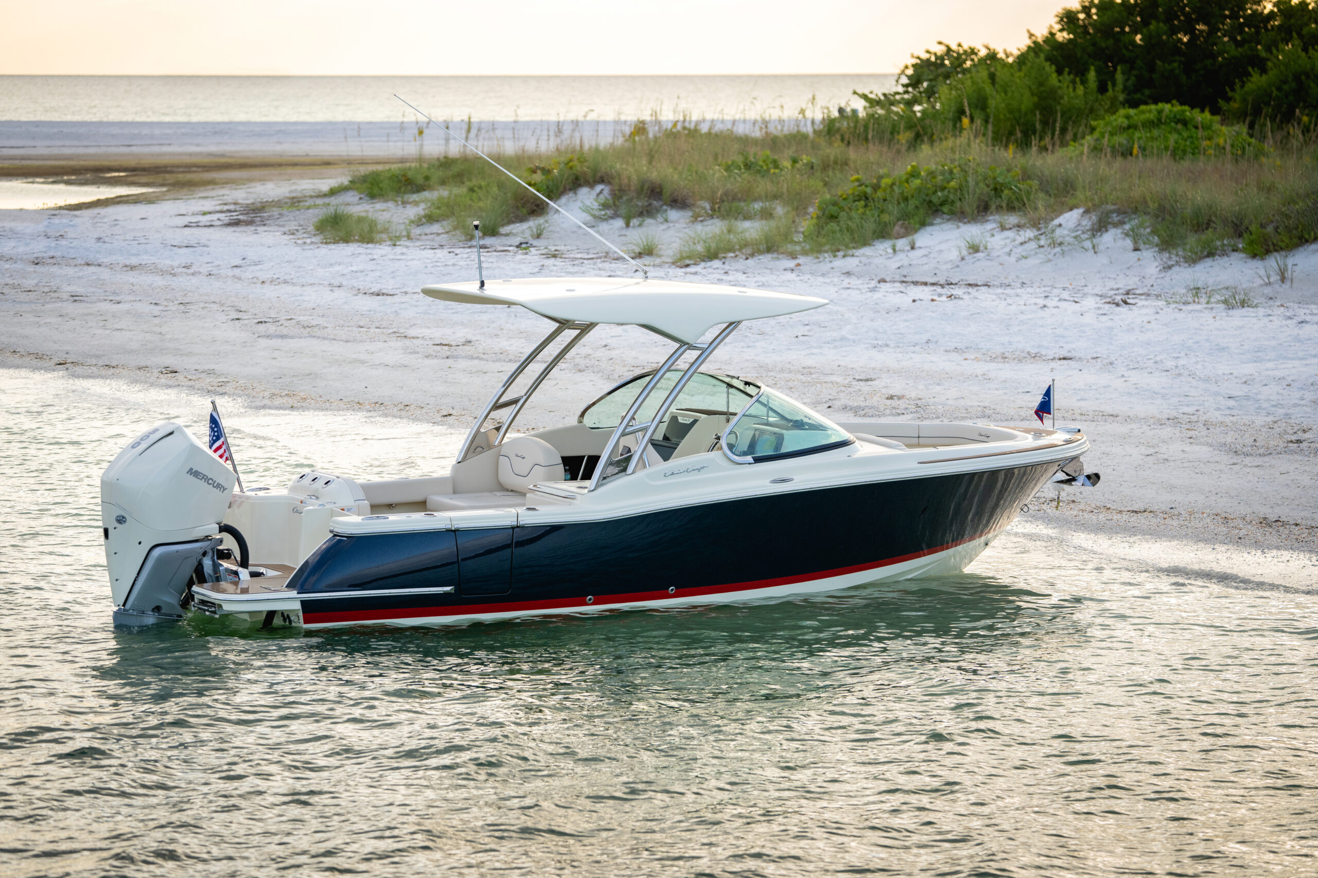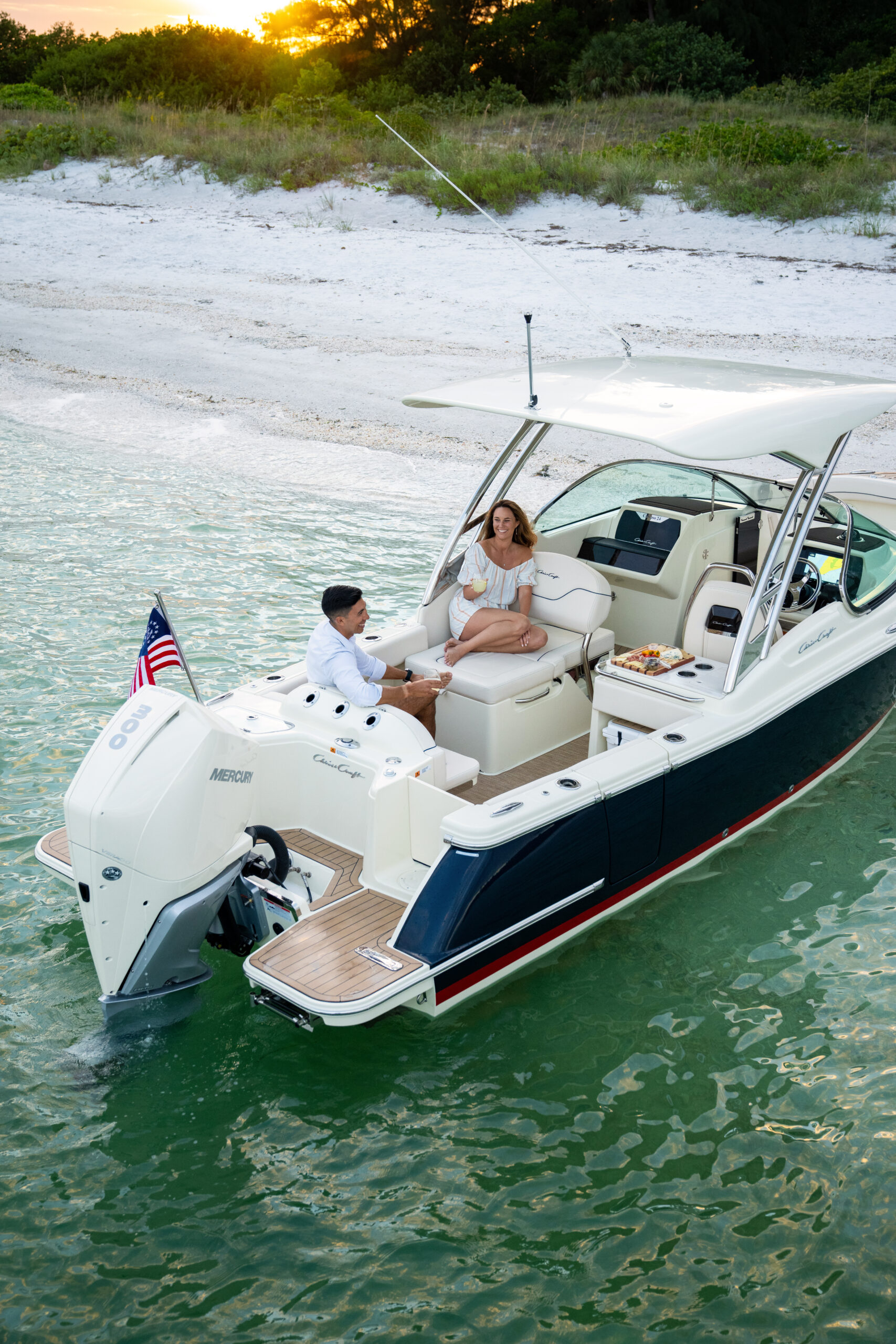 Chris Craft are known for the discerning eye for detail that their boats are made with. For 150 years, they’ve been building boats one way: by hand. From beautifully sculpted hardware made from custom fabricated stainless steel, to carefully selected and meticulously applied teak and hand-stitched upholstery, their team of experts design and craft every detail to perfection.