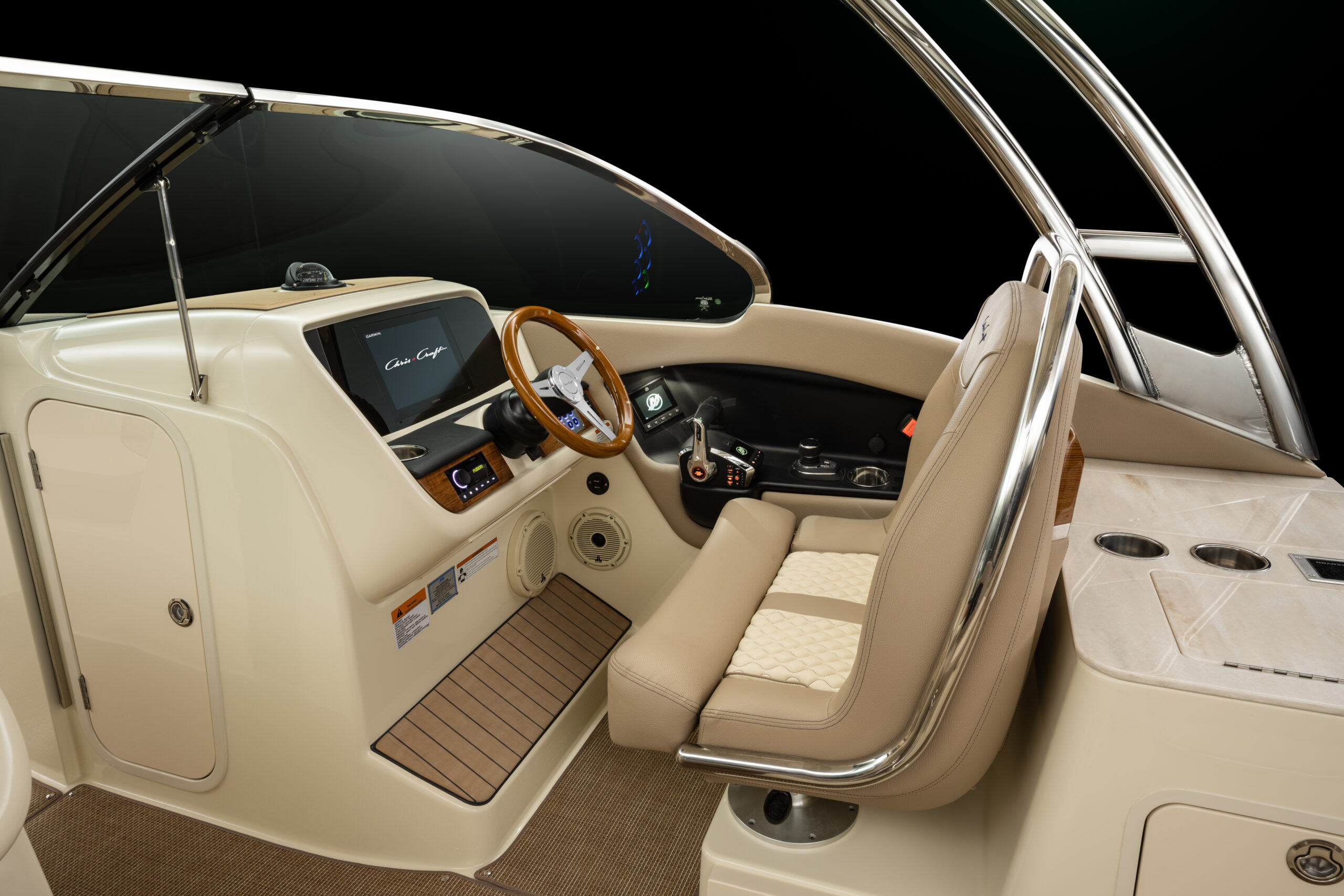 Chris Craft are known for the discerning eye for detail that their boats are made with. For 150 years, they’ve been building boats one way: by hand. From beautifully sculpted hardware made from custom fabricated stainless steel, to carefully selected and meticulously applied teak and hand-stitched upholstery, their team of experts design and craft every detail to perfection.