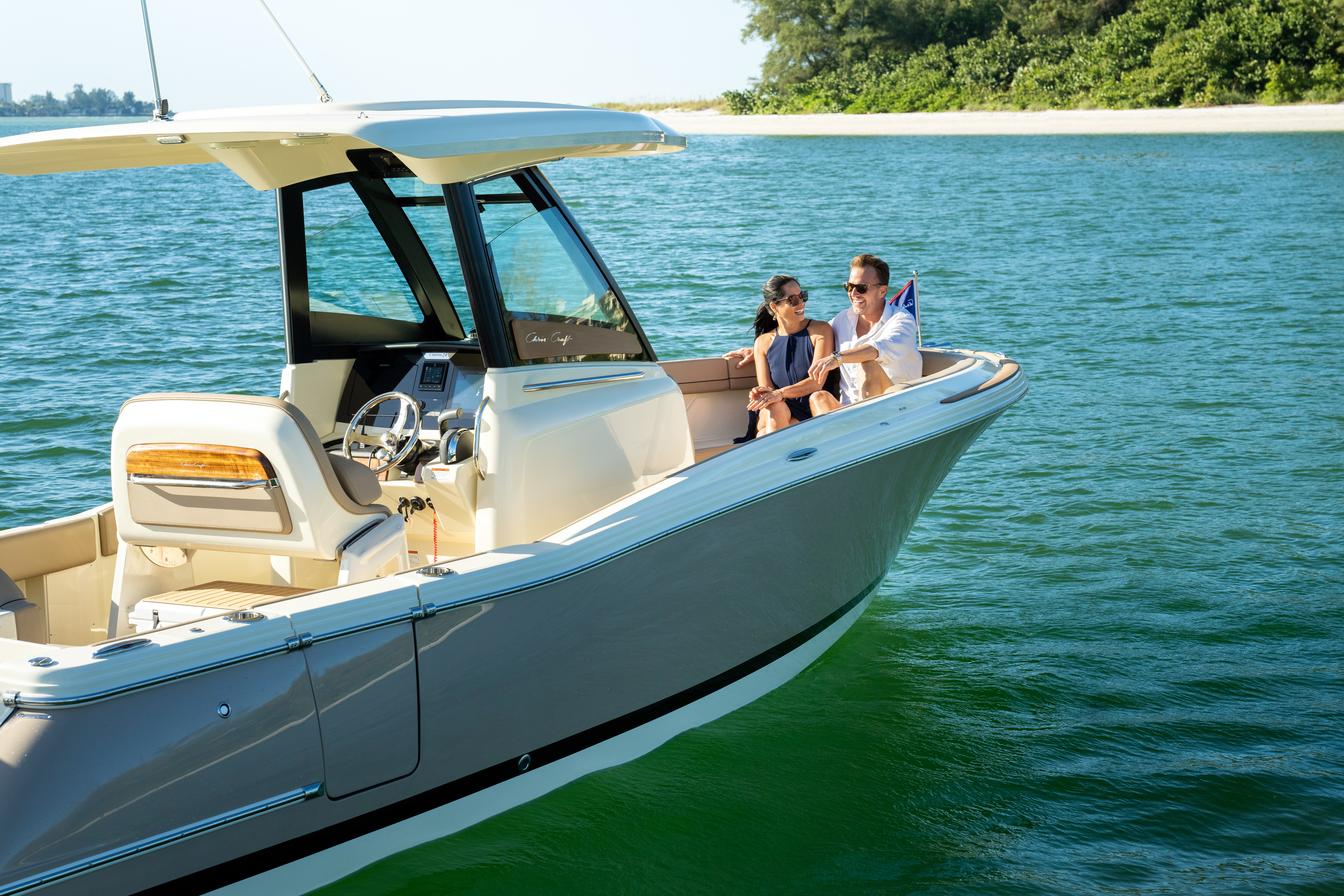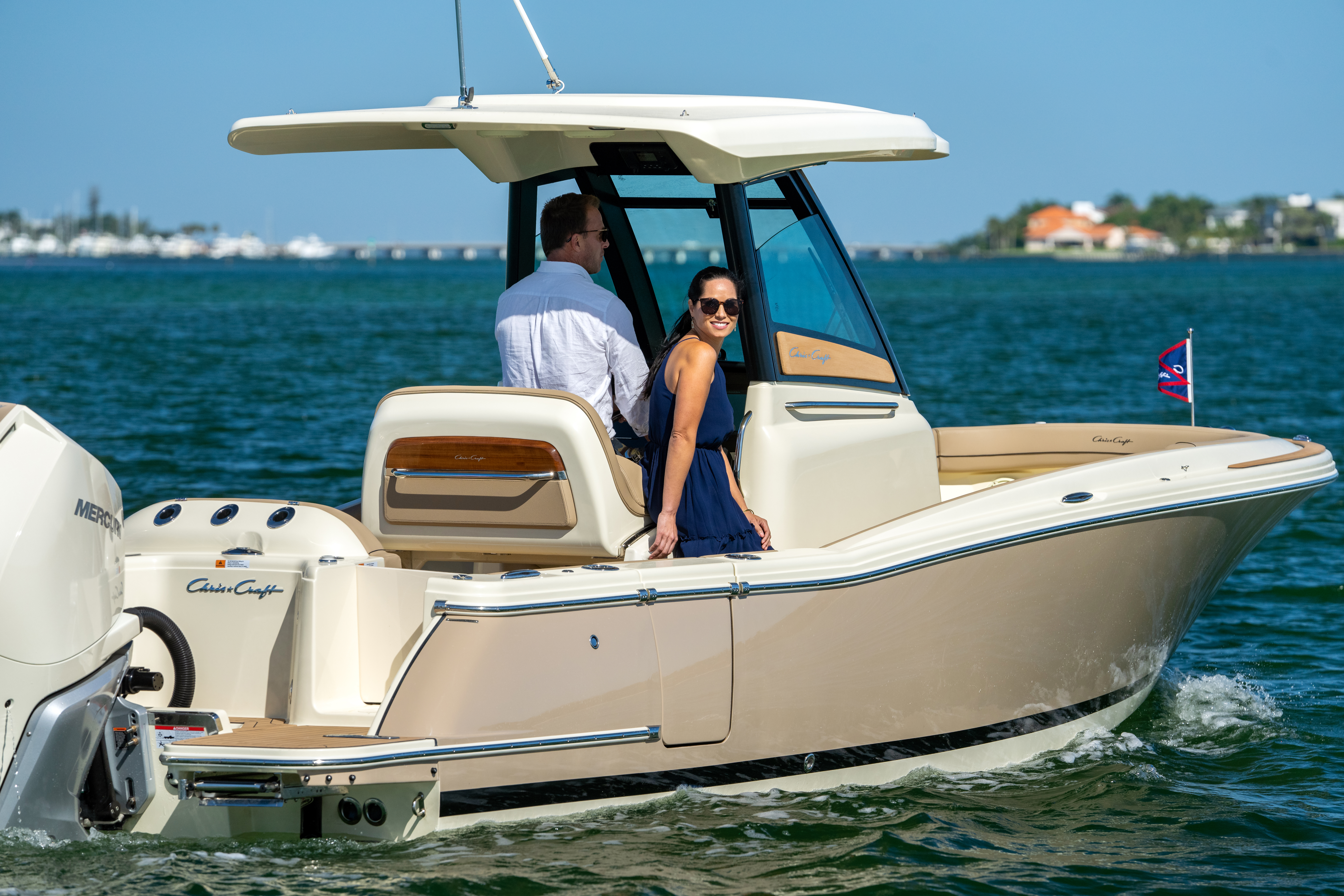 Chris Craft are known for the discerning eye for detail that their boats are made with. For 150 years, they’ve been building boats one way: by hand. From beautifully sculpted hardware made from custom fabricated stainless steel, to carefully selected and meticulously applied teak and hand-stitched upholstery, their team of experts design and craft every detail to perfection.