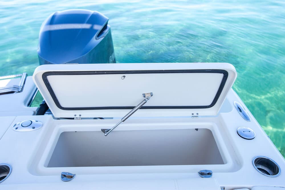 - Fish/ice box – 89-qt. (84.2 l) starboard bow insulated box w/ob drain