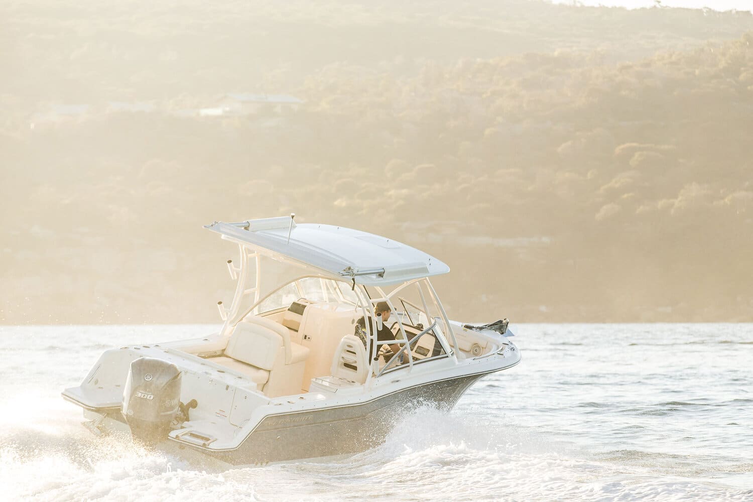 - SureShade® manually retractable hardtop shade w/Sunbrella® canvas (oyster) (not available w/top mounted rod holders or outrigger kit options)
