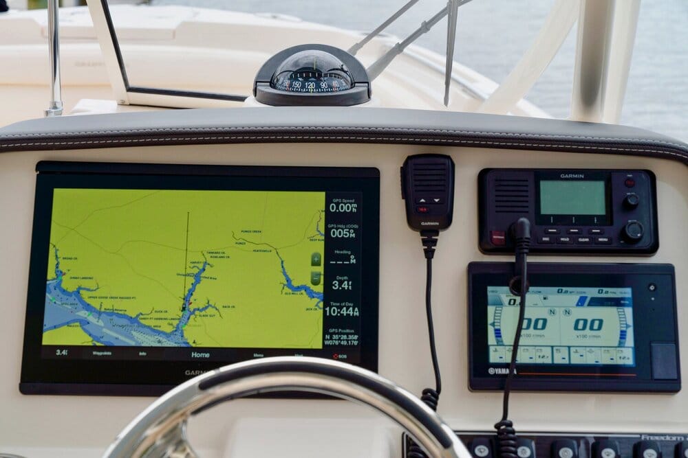 Grady-White’s dual console offshore boats are truly the most versatile, luxurious boats on the market, and the redesigned 28-foot Freedom 285 is no exception. With its wide beam, open cockpit, and plentiful features including plush seating and a port side cockpit door with boarding ladder, the 285 delivers on both comfort and innovation. Fully outfitted for fishing, water sports, or just cruising the waterfront, this sleek and sporty boat is a pleasure to drive and reliable in all sea conditions because it sits on Grady’s signature SeaV²® hull.