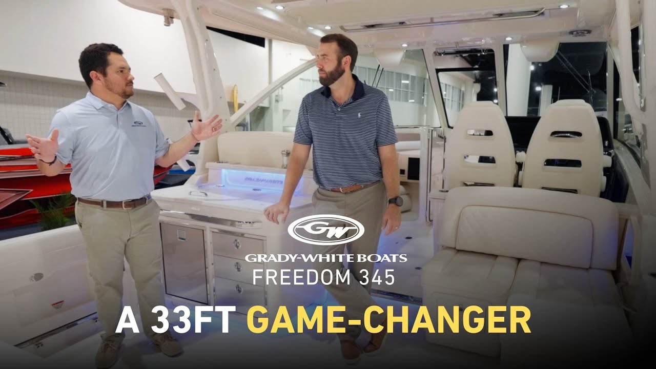Following her sister-ship, the Freedom 415, the new Freedom 345 is perfectly crafted for the dual console boat lover that appreciates fine craftsmanship, luxurious features, and the innovative designs typically found on larger boats, but in a smaller package. From stern to stem, the 345 delivers comfort, style, and rugged durability, making it well suited for the couple or family that loves to entertain and cruise as much as fish the offshore waters. A perfect blend of Grady-White DNA, the Freedom 345 exemplifies legendary performance, exceptional attention to detail, and unmatched safety, placing it at the top of its class and making it just what discerning customers are looking for.