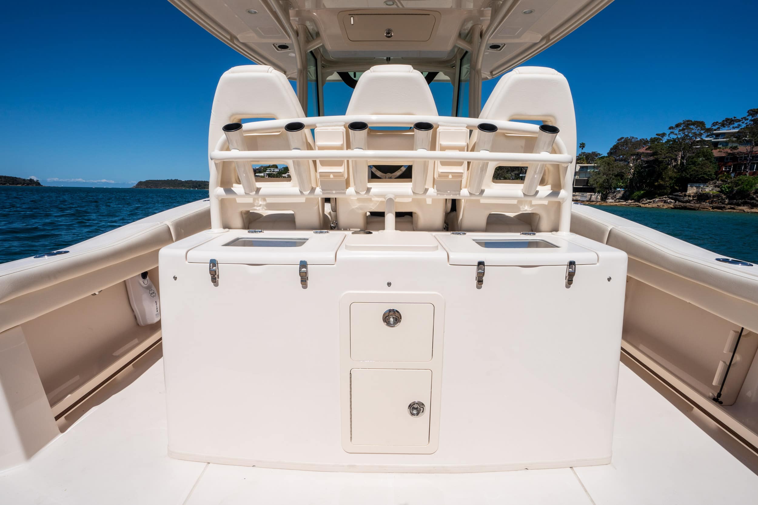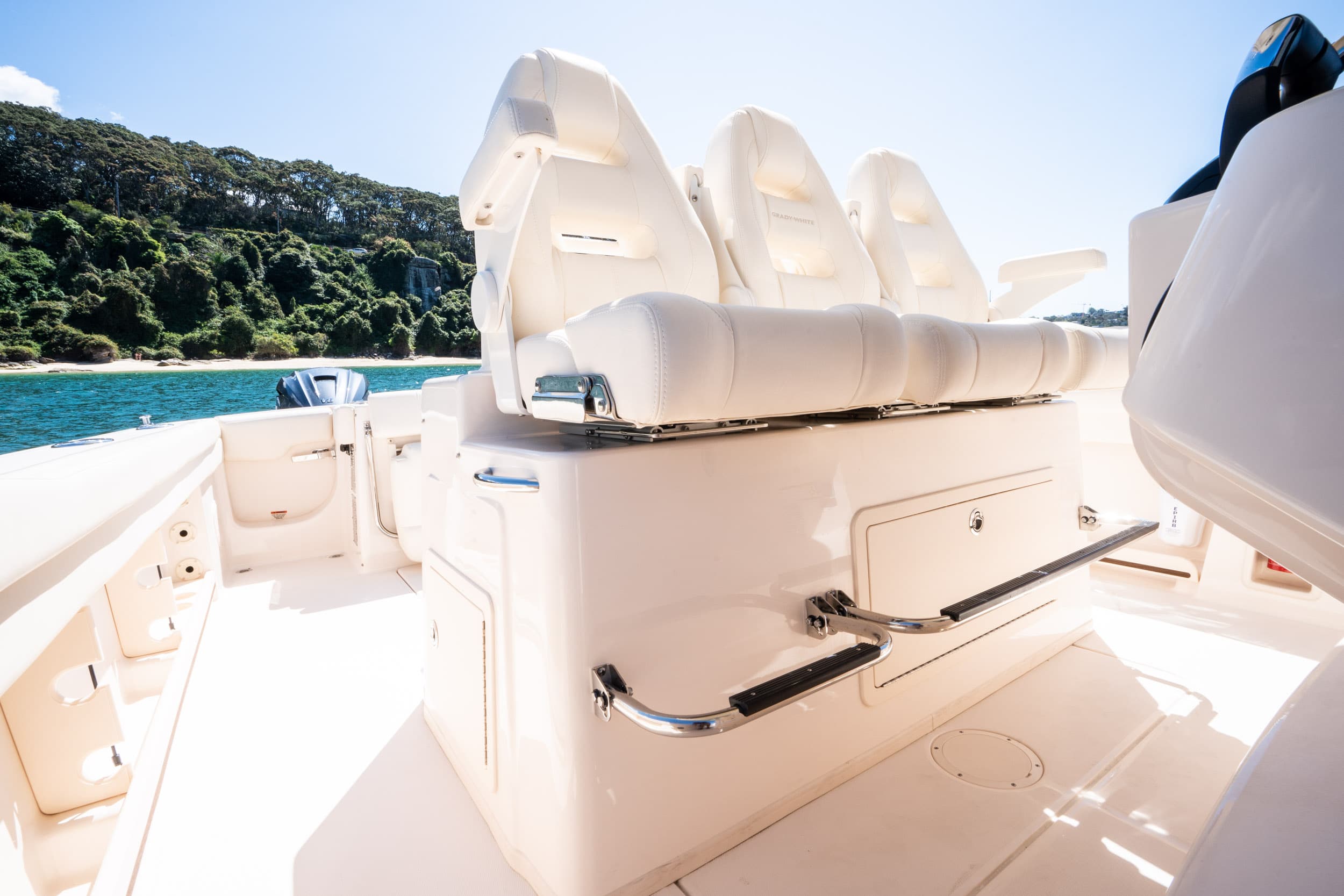 The Grady-White Canyon 336 is the best 33-foot centre console for the sportfishing family. The advanced helm and windshield design provide exceptional visibility and added space throughout the cockpit and console. With added amenities throughout, you’ll be hard pressed to find another boat of this size with the same level enhancements and upgrades.