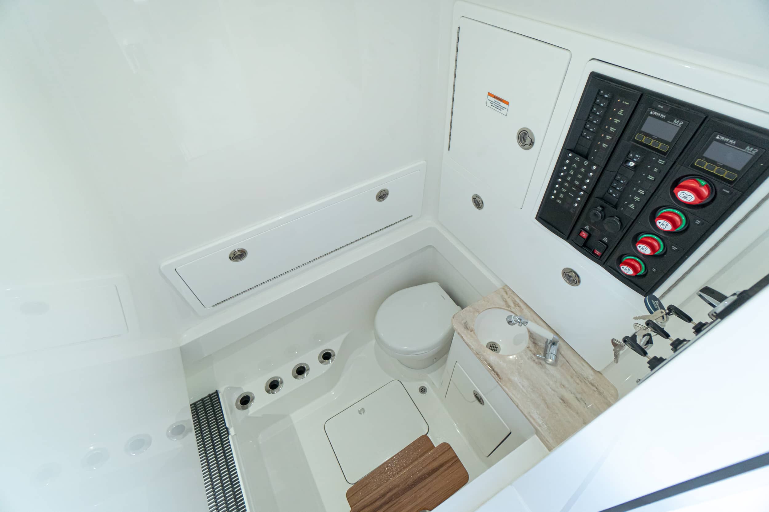 Performance needs vary depending on fishing preferences, targeted species and other factors. Each engine installation can be equipped with joystick helm control featuring GPS station-keeping. The V-37 has been designed and engineered for a Seakeeper SK 3, which is mounted in the stringer grid and accessed through a gasketed, tightly sealed deck hatch.