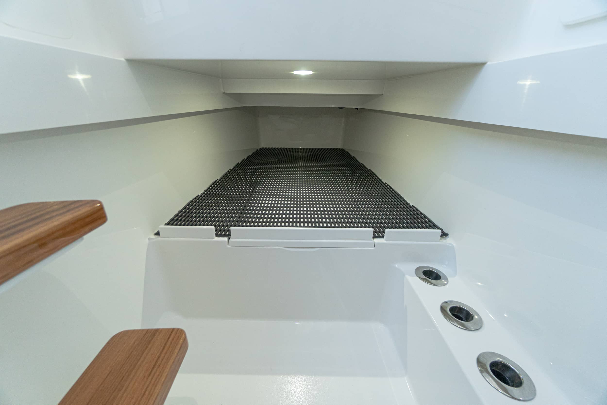 - Forward anchor locker with built in anchor tube and shelf, painted Awlgrip finish