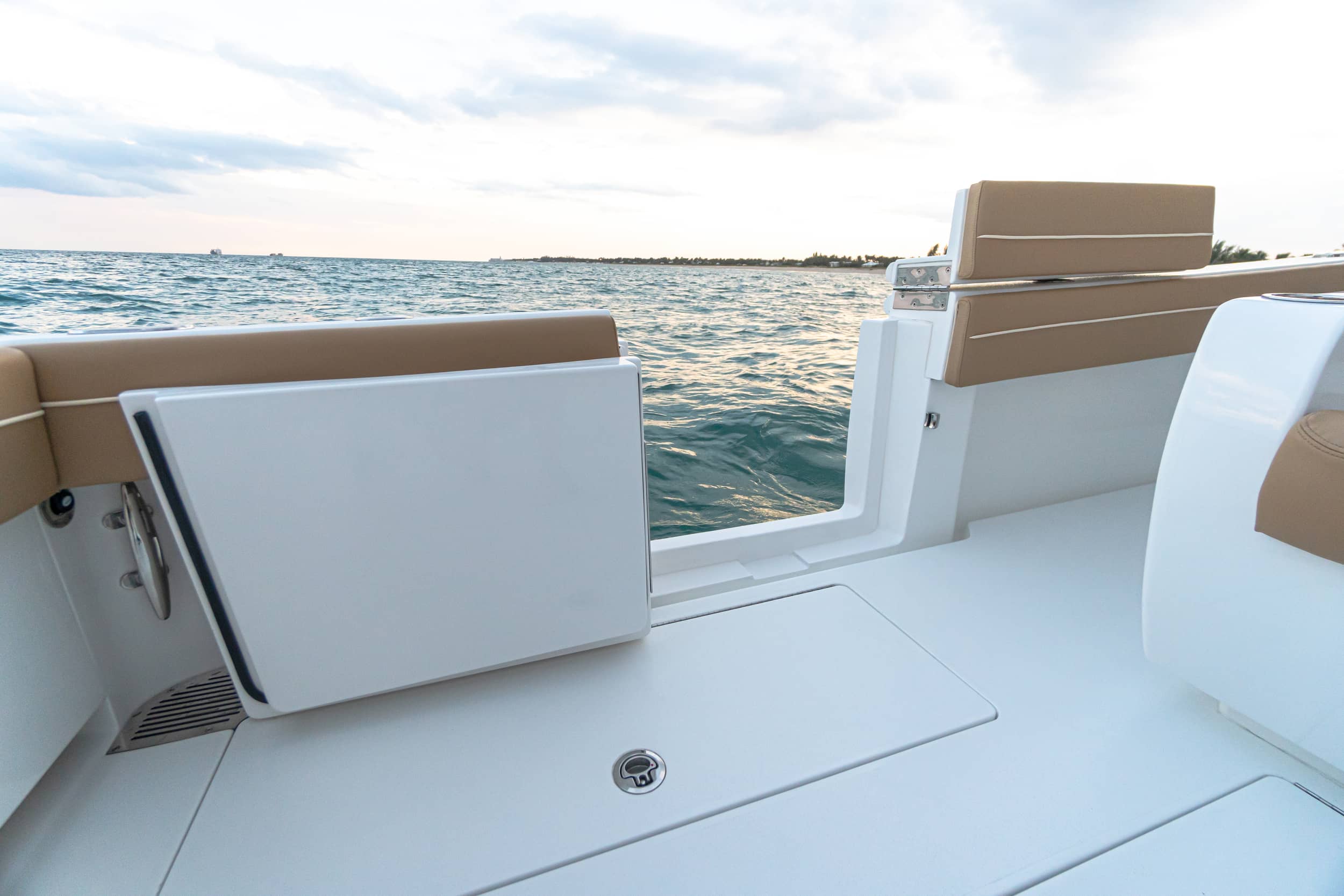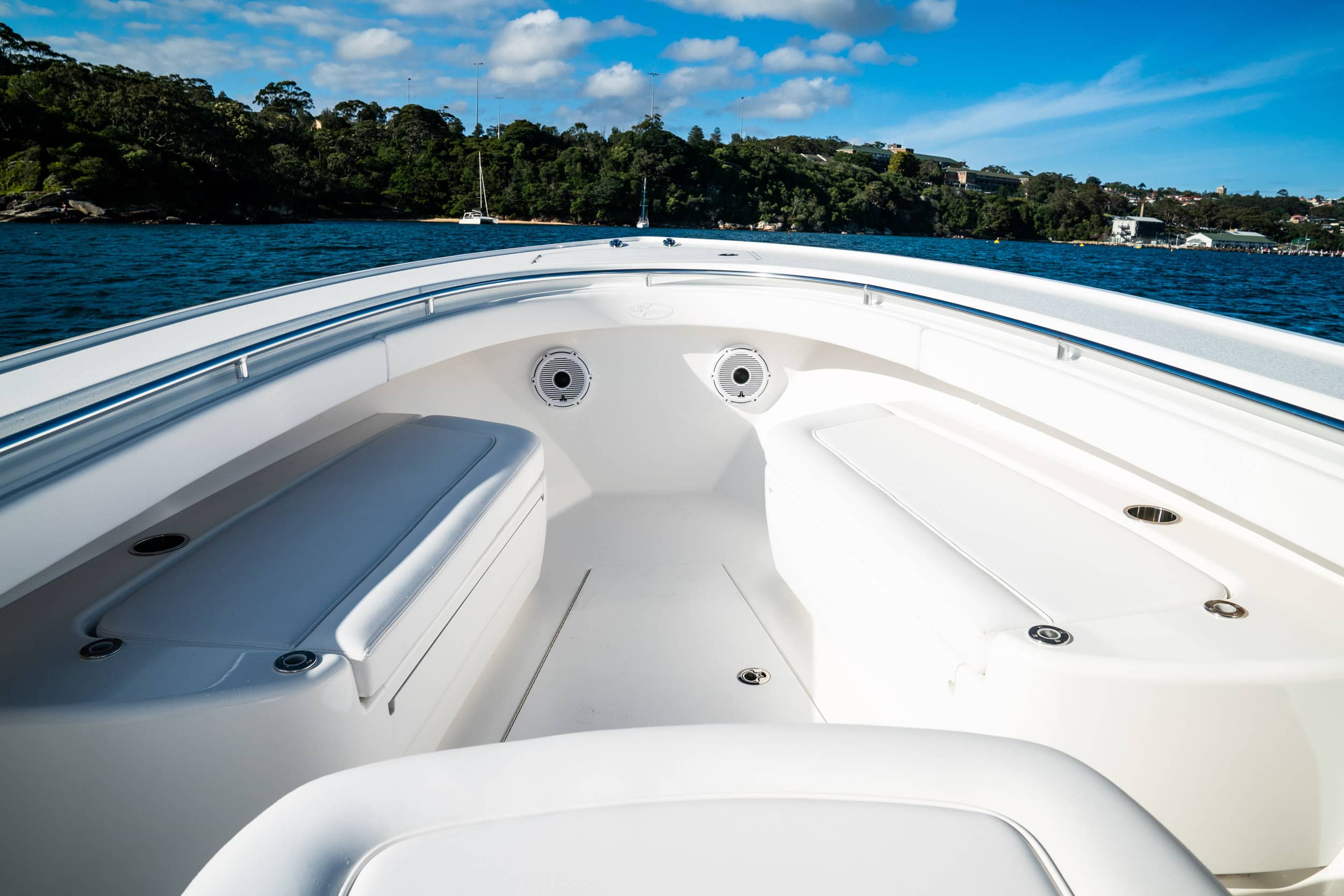 The V-37 can be outfitted with an aft mezzanine seating module with armrests, tackle storage and an insulated cooler (or optional live well) under the seat. Loaded with lockers, compartments and hardware that maximise storage while maintaining the boat’s 360-degree accessibility and more.