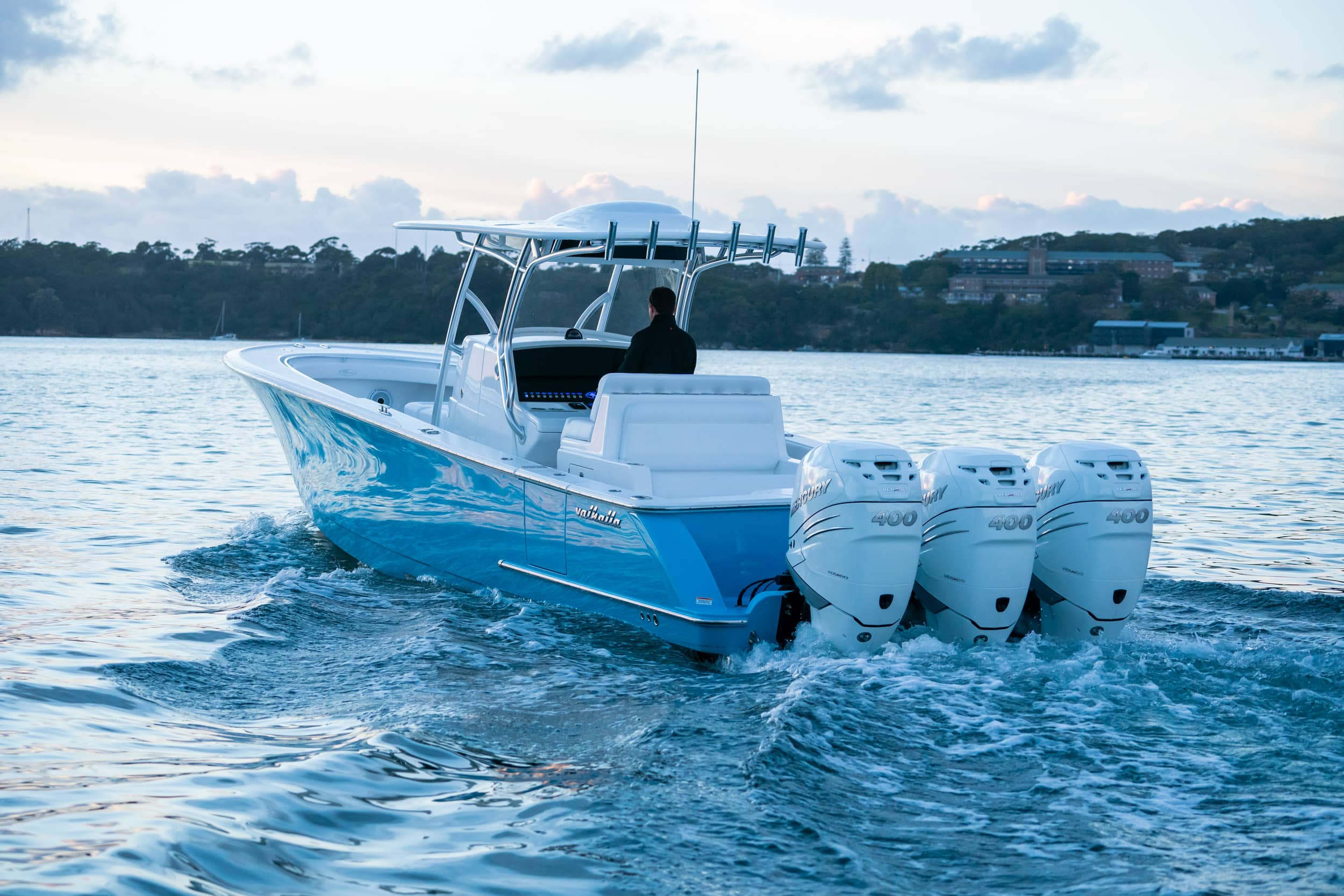 - Triple Mercury Verado 400 cold fusion white w/EPS Seastar Optimus steering