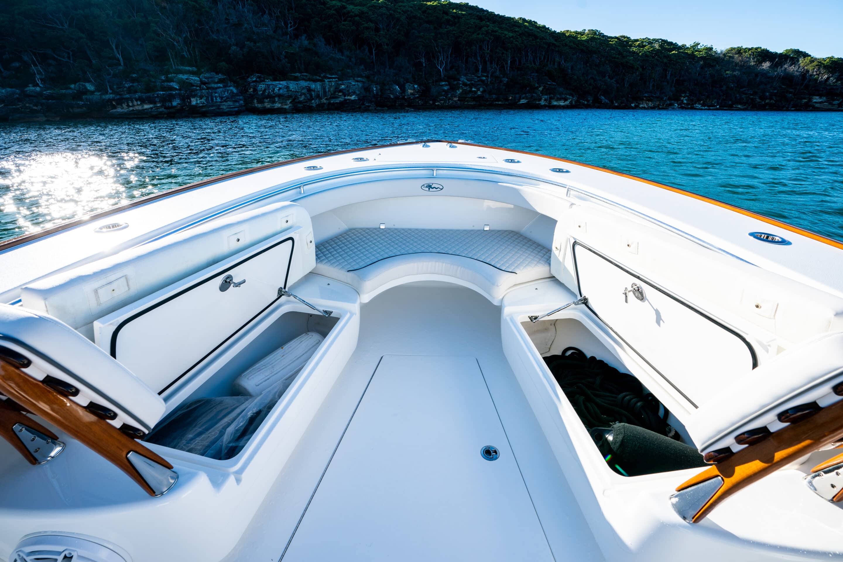 The V-41 will excel on the tournament circuit, with a clean deck layout that maximises the boat’s 360-degree access and an arsenal of standard and optional fishing features.