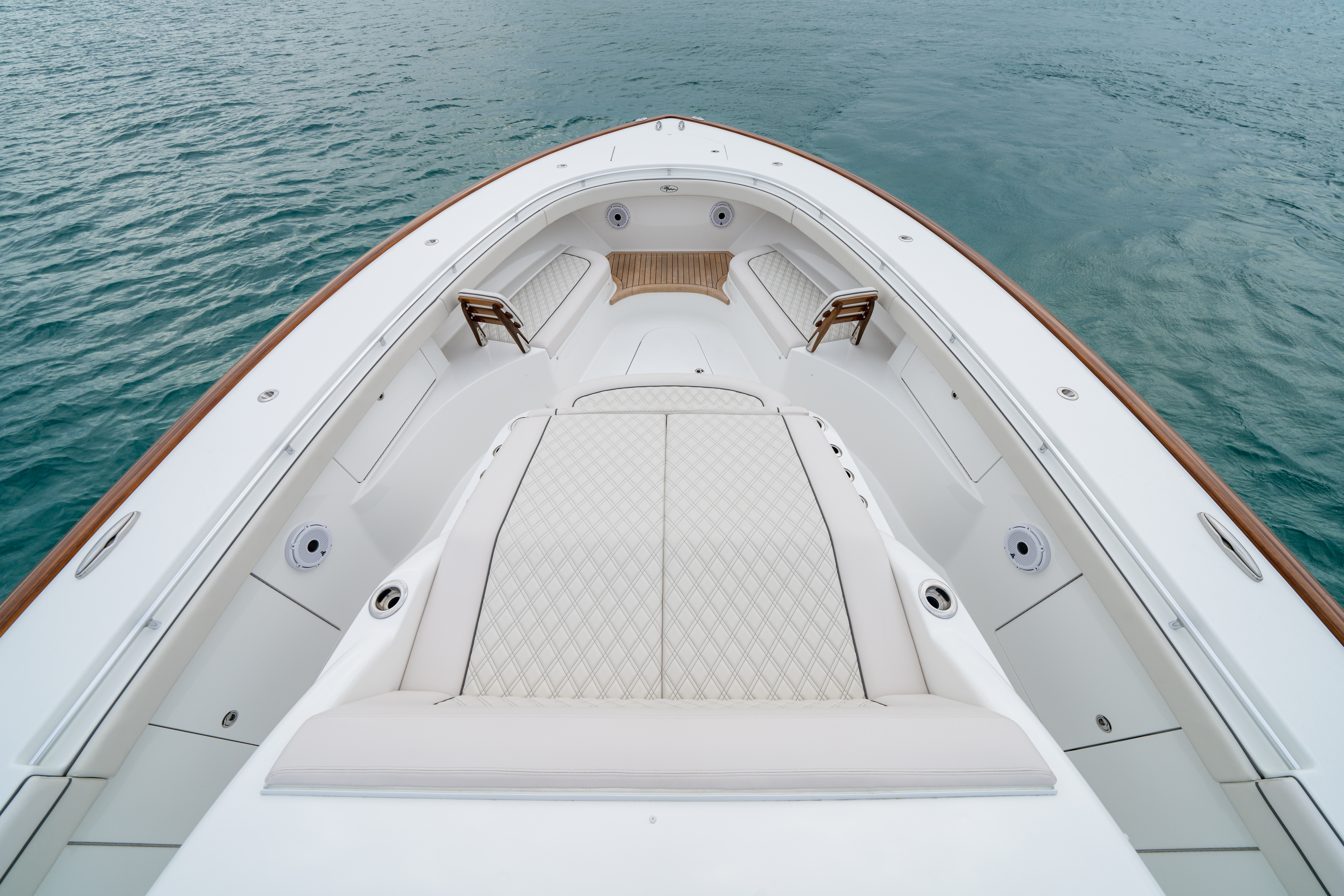 - Forward lounge seating integrated into console with (2) Gemlux cup/rod holders