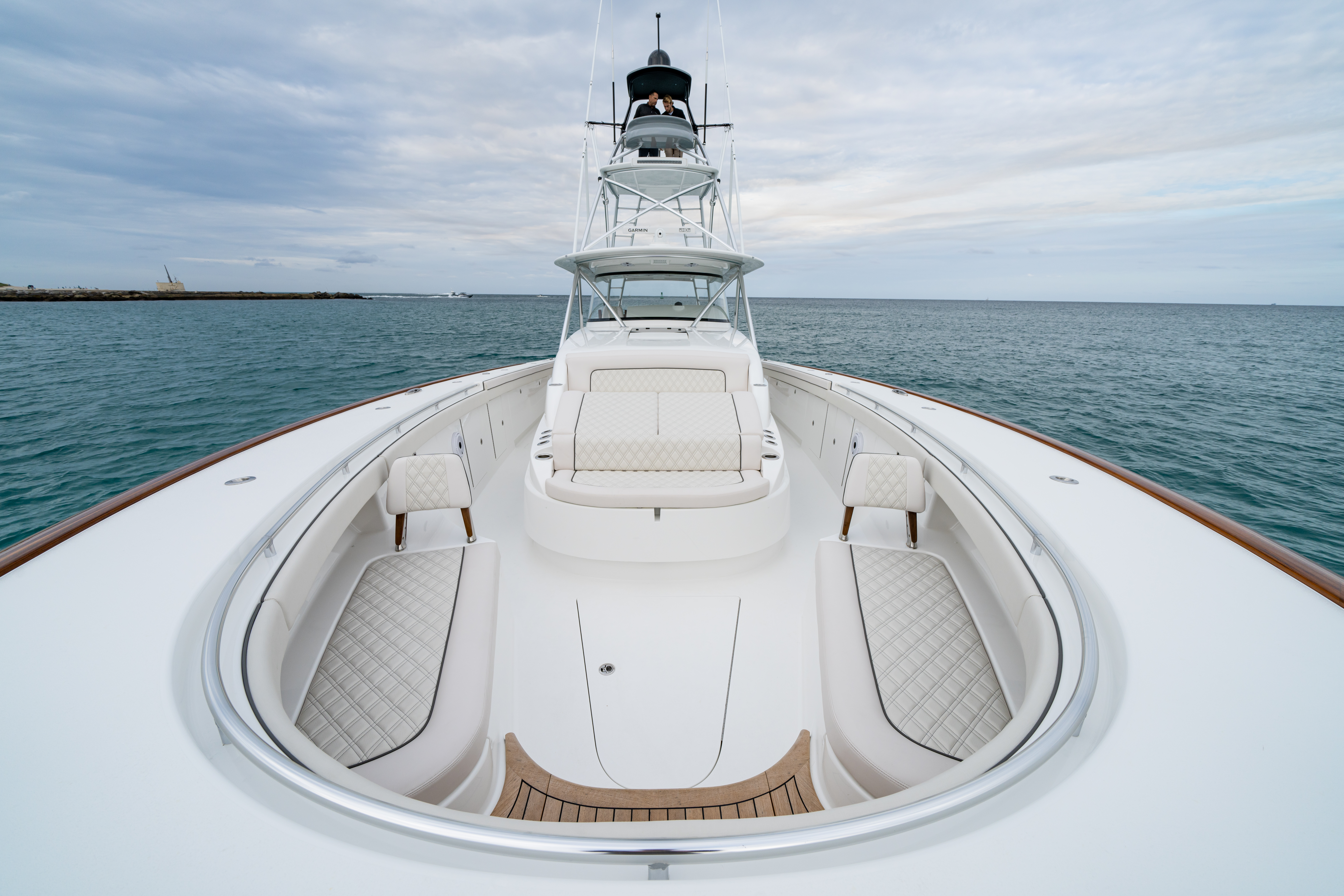 - Teak deck, for raised helm platform area