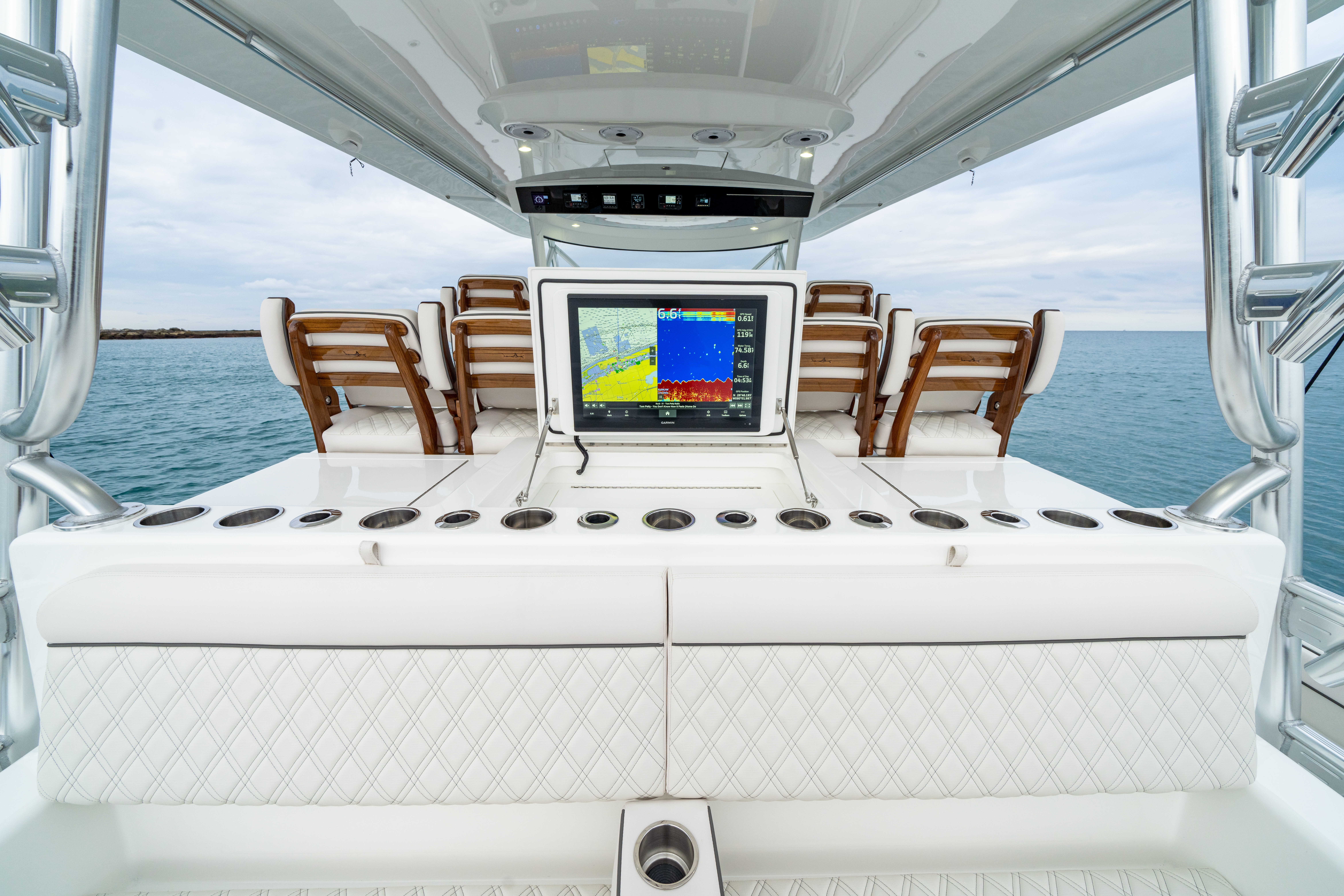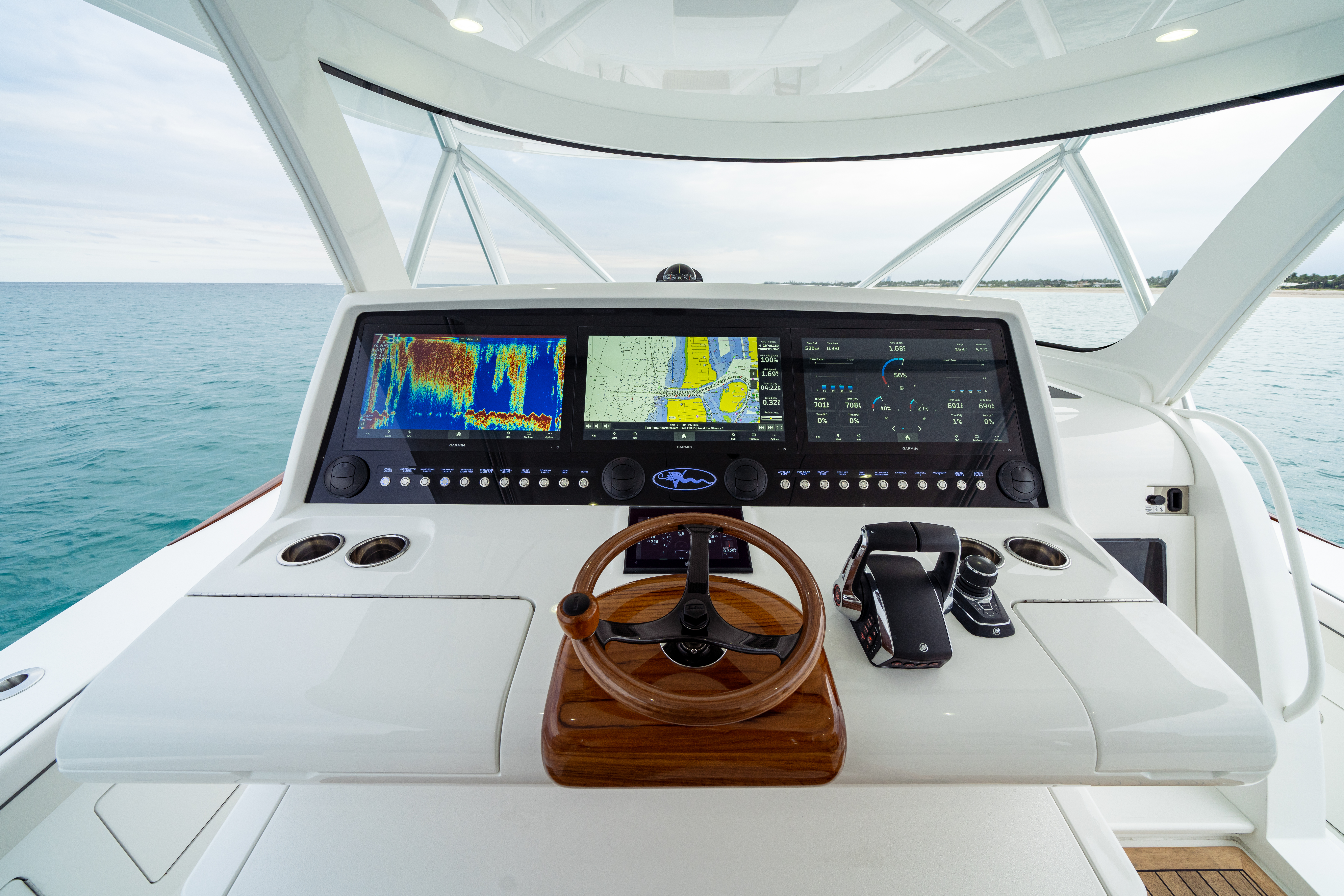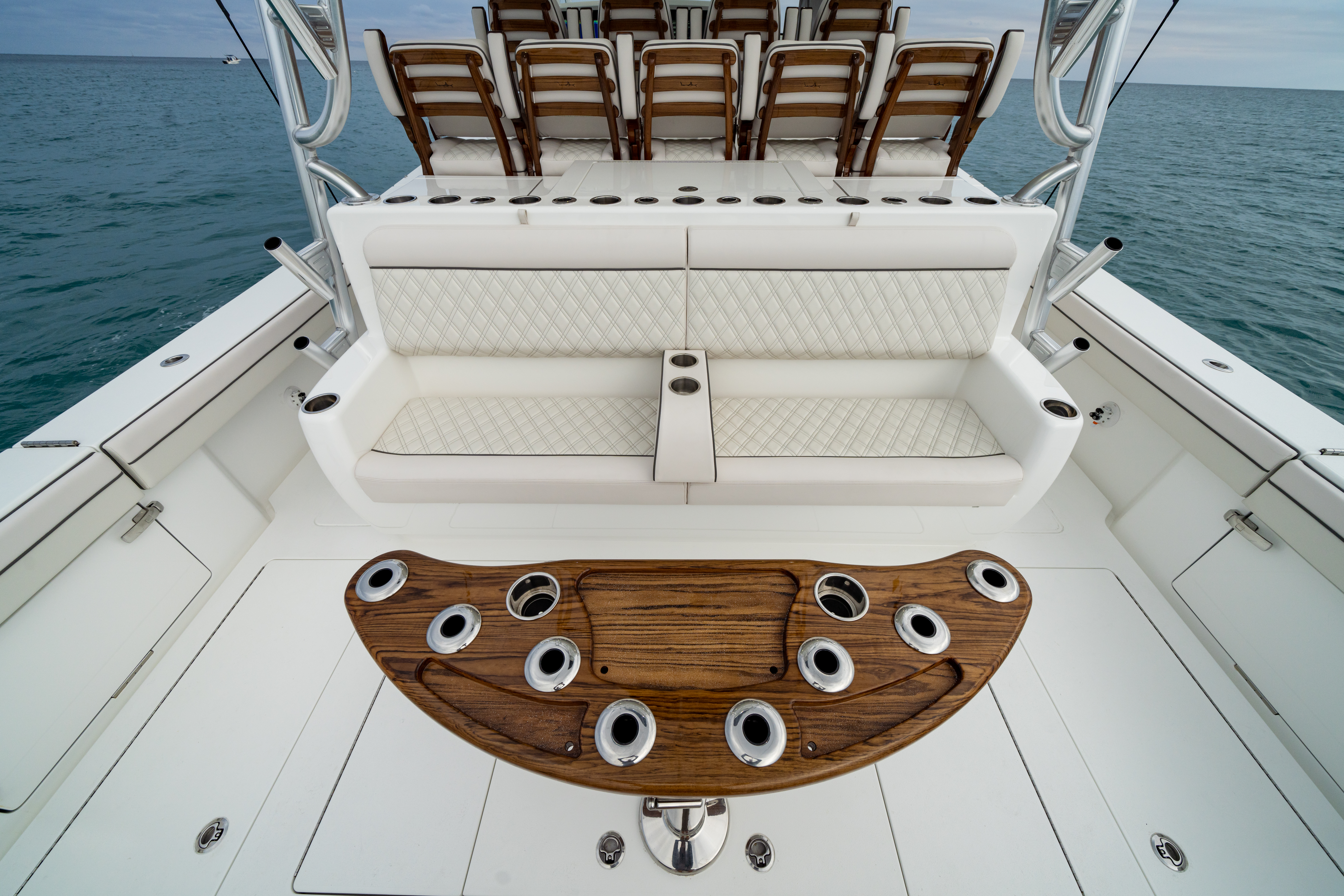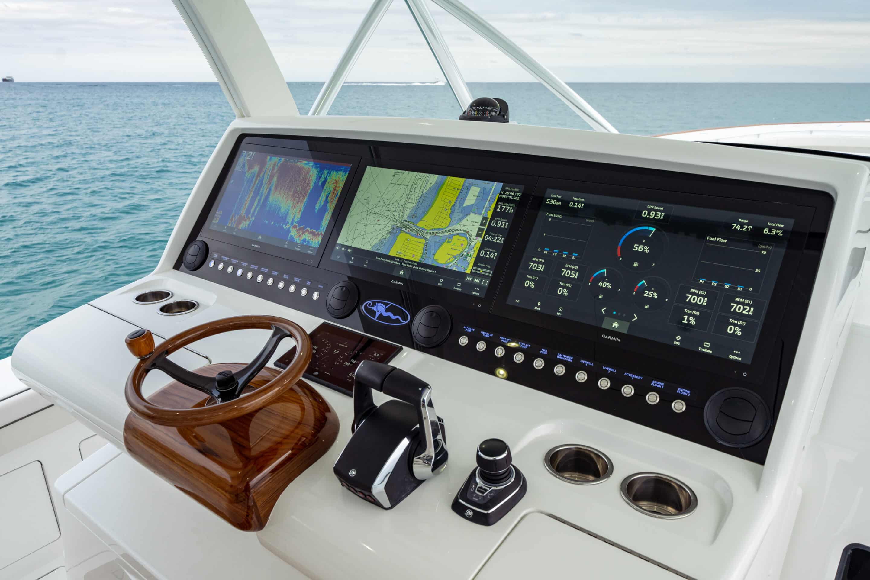 - Flush mounted cup holders on helm (4)