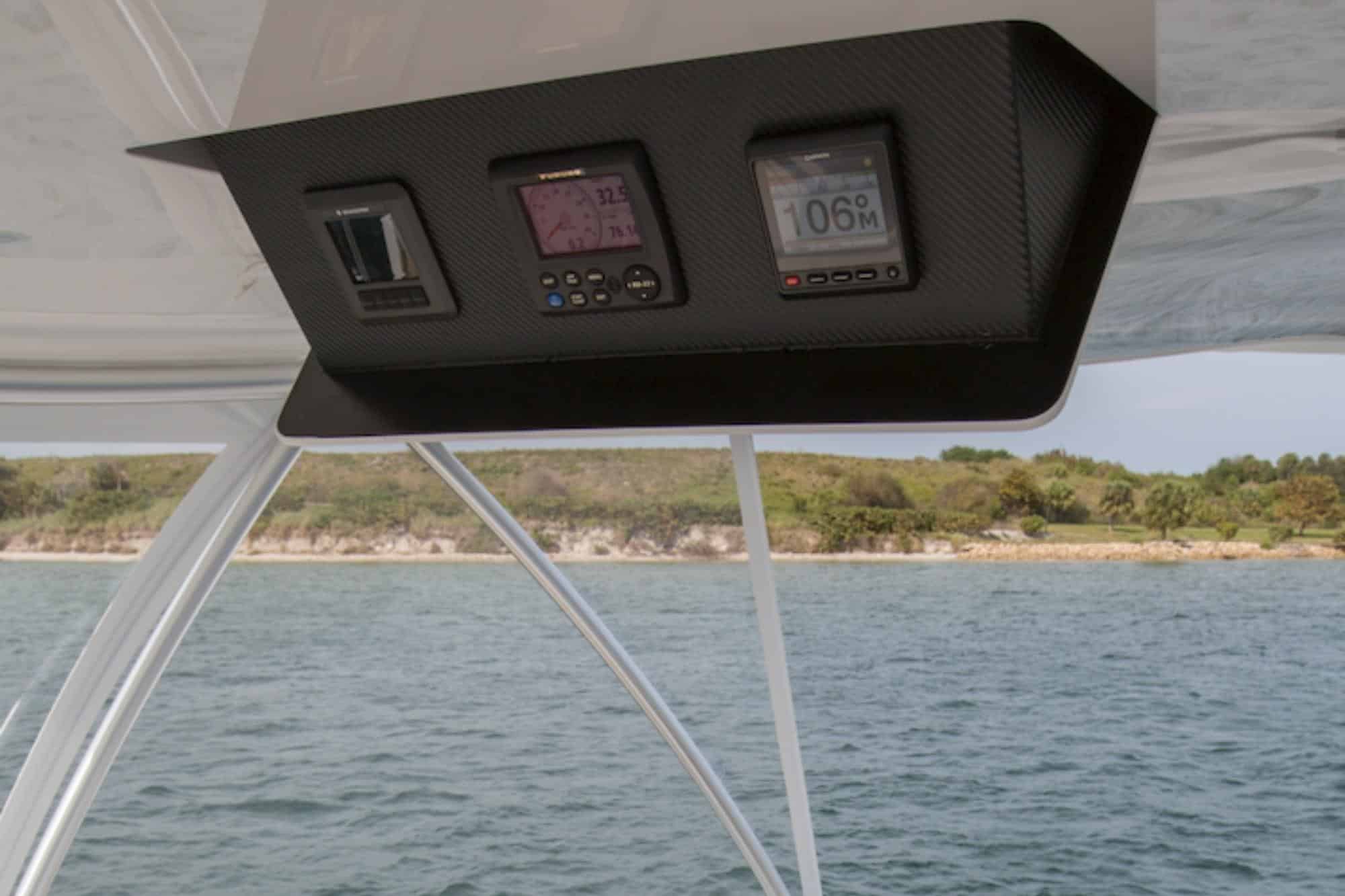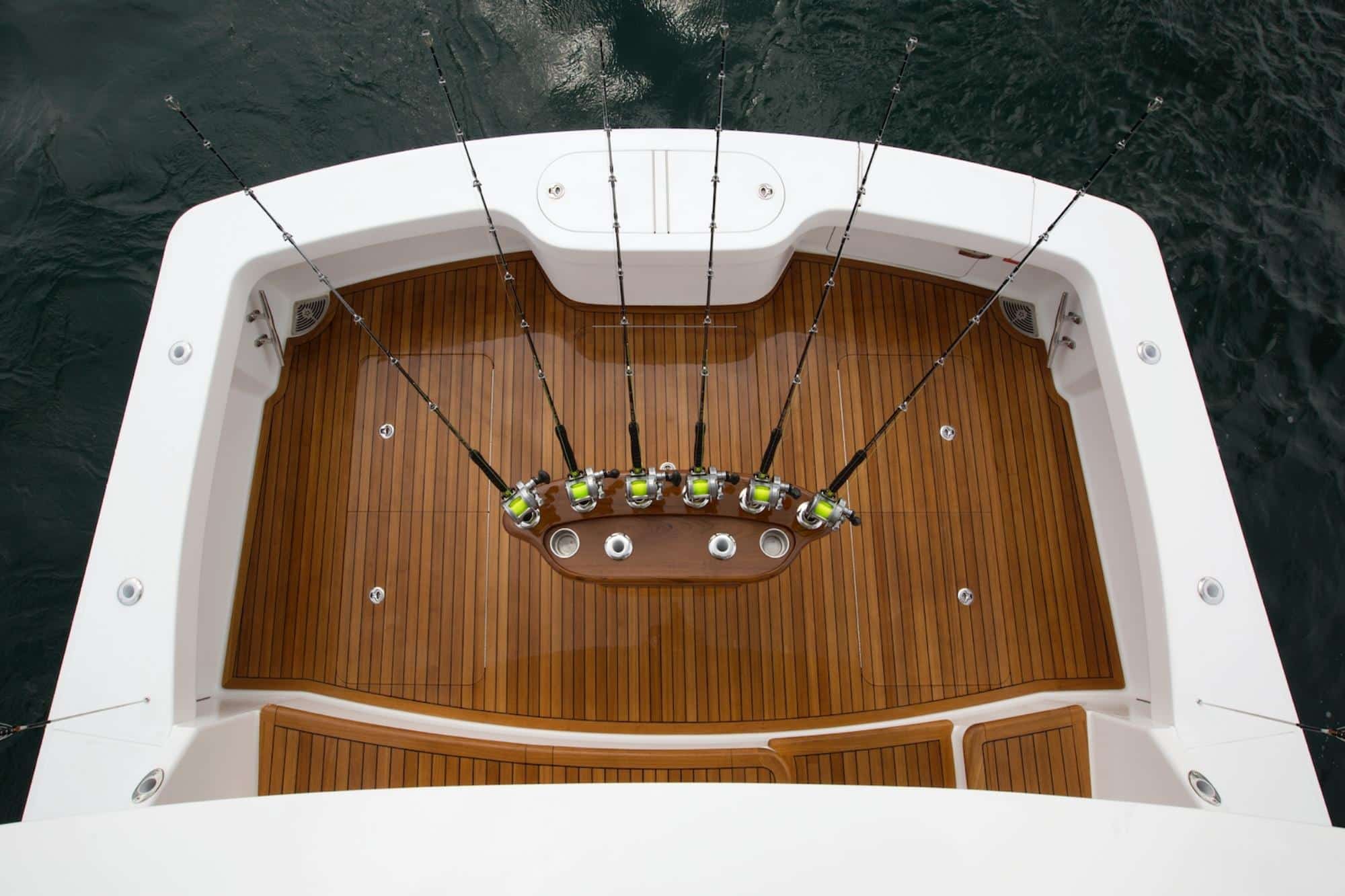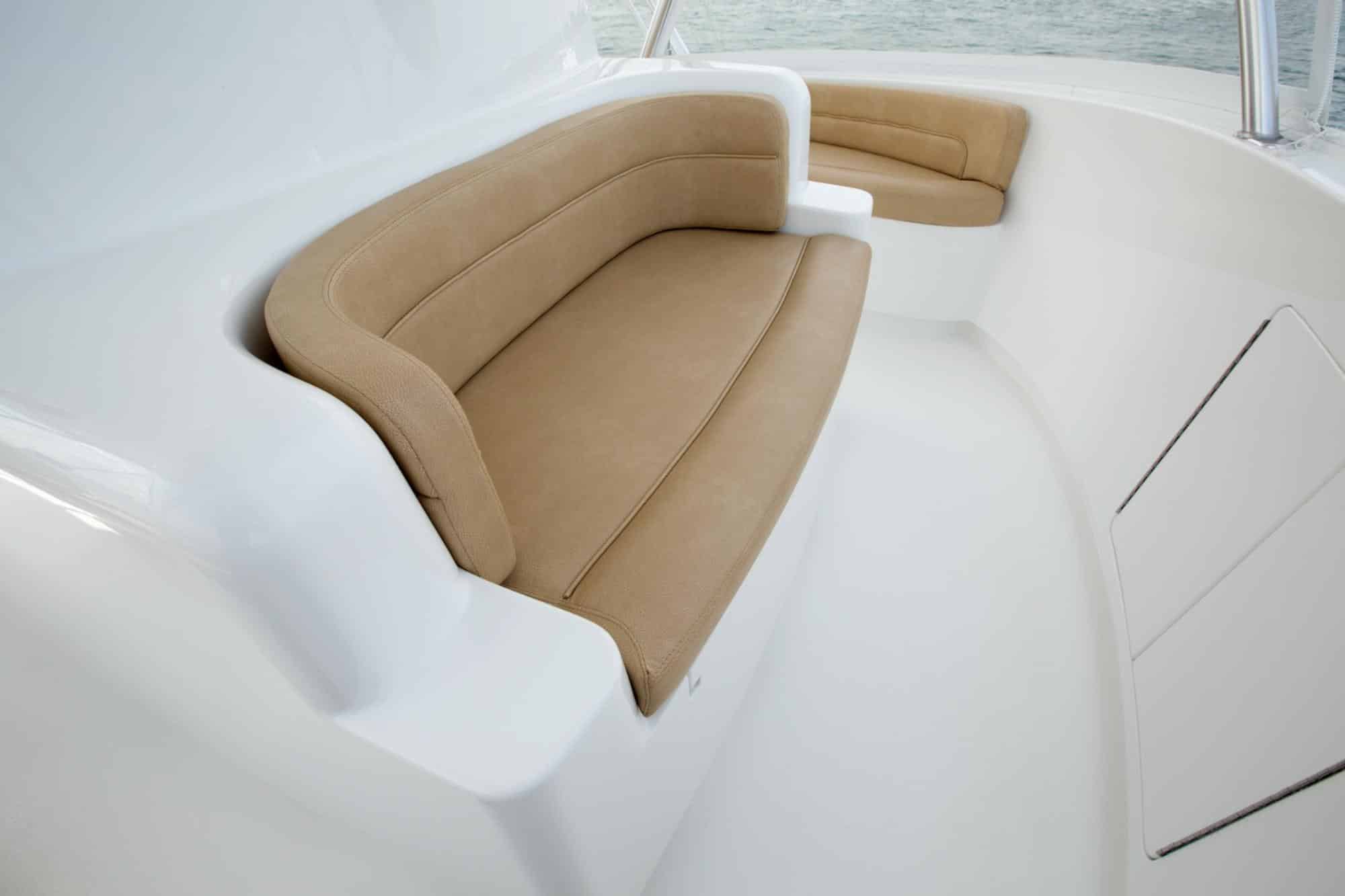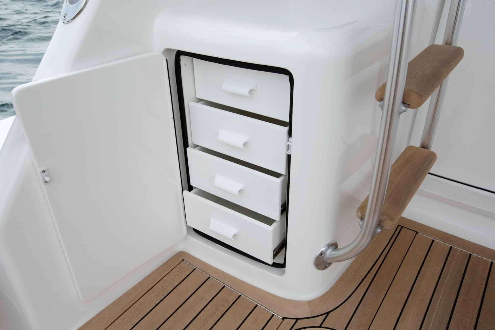 - Extended overhang for extra room to move around behind helm and companion seats with anodized aluminium aft railing
