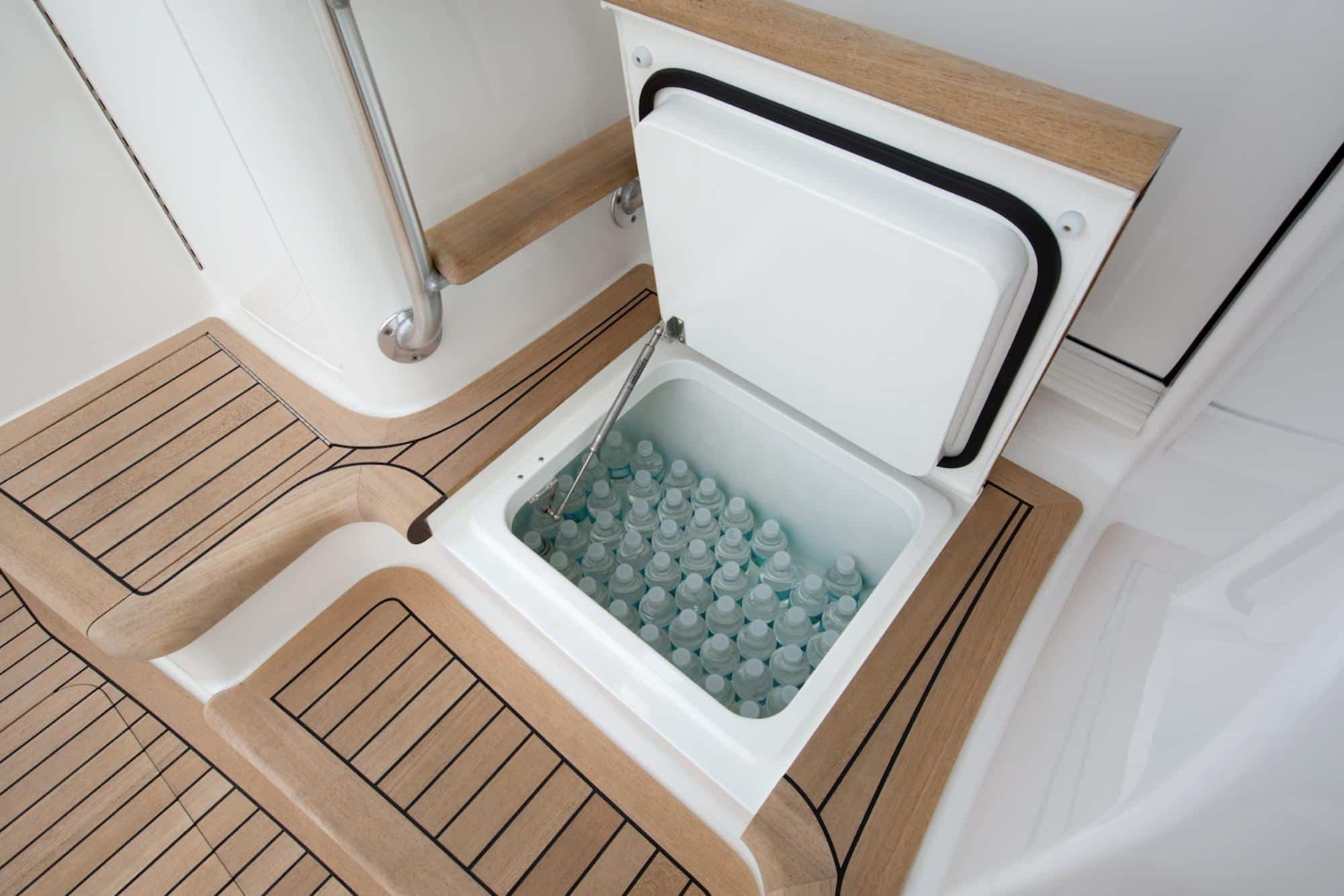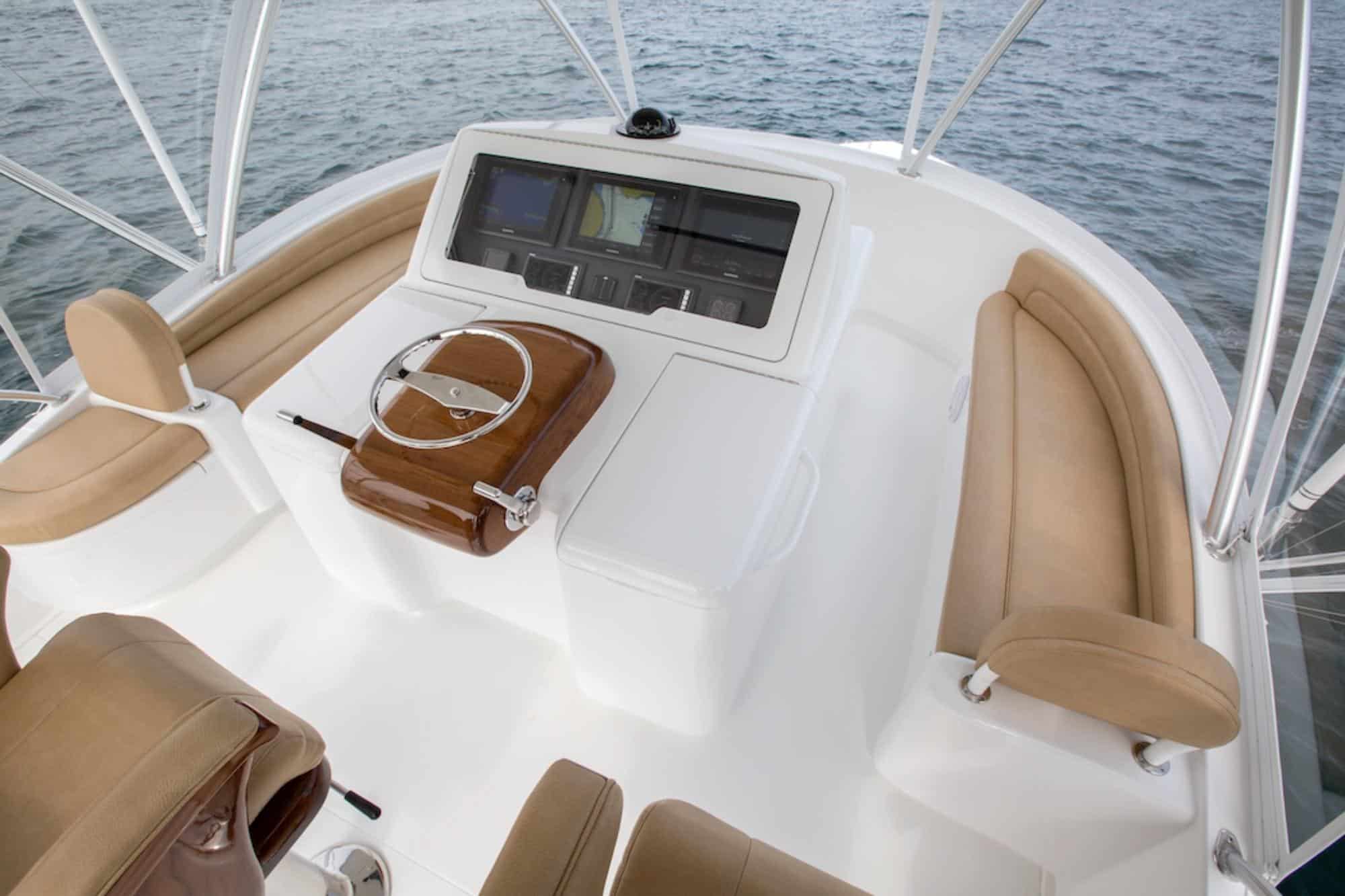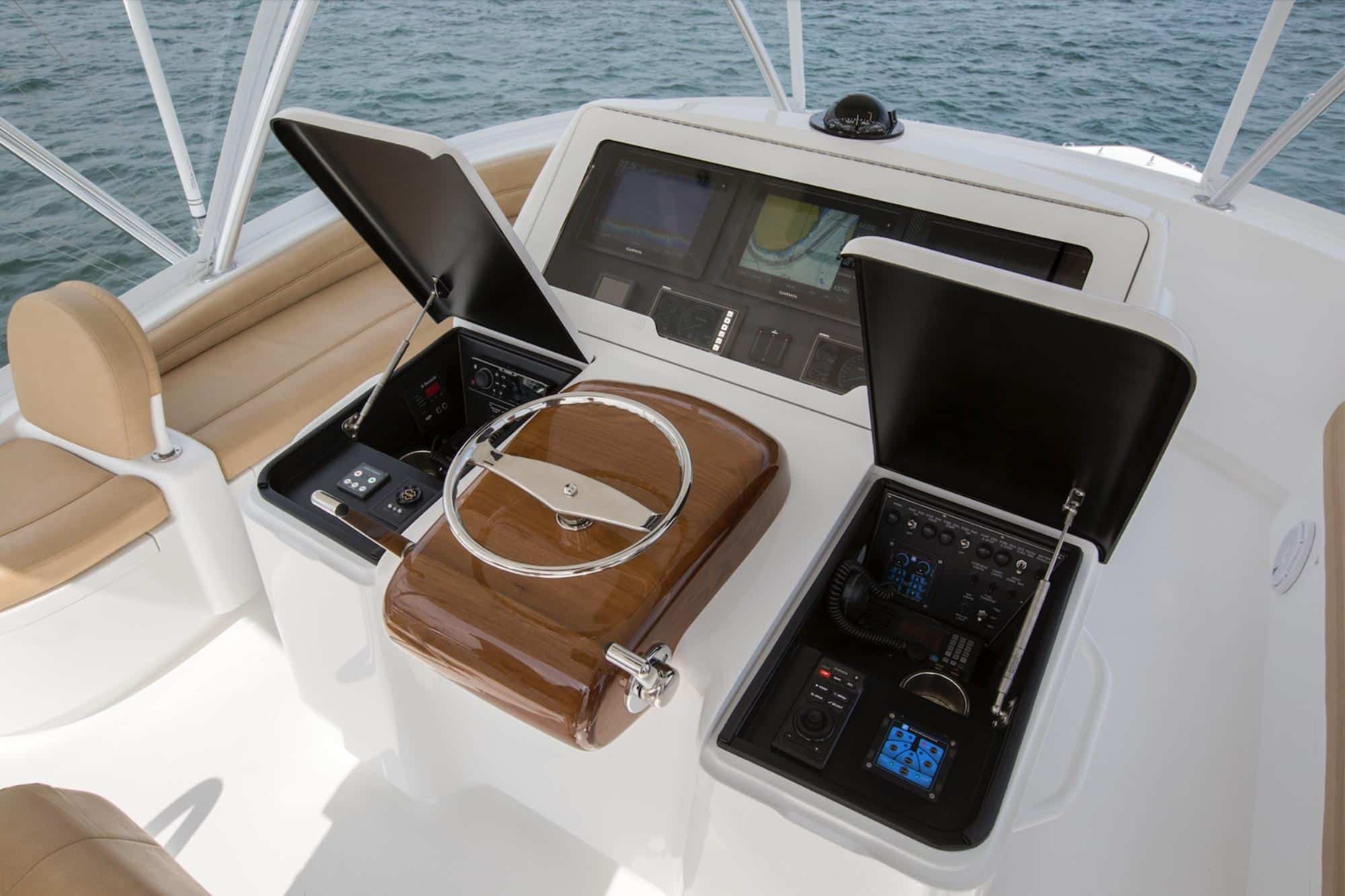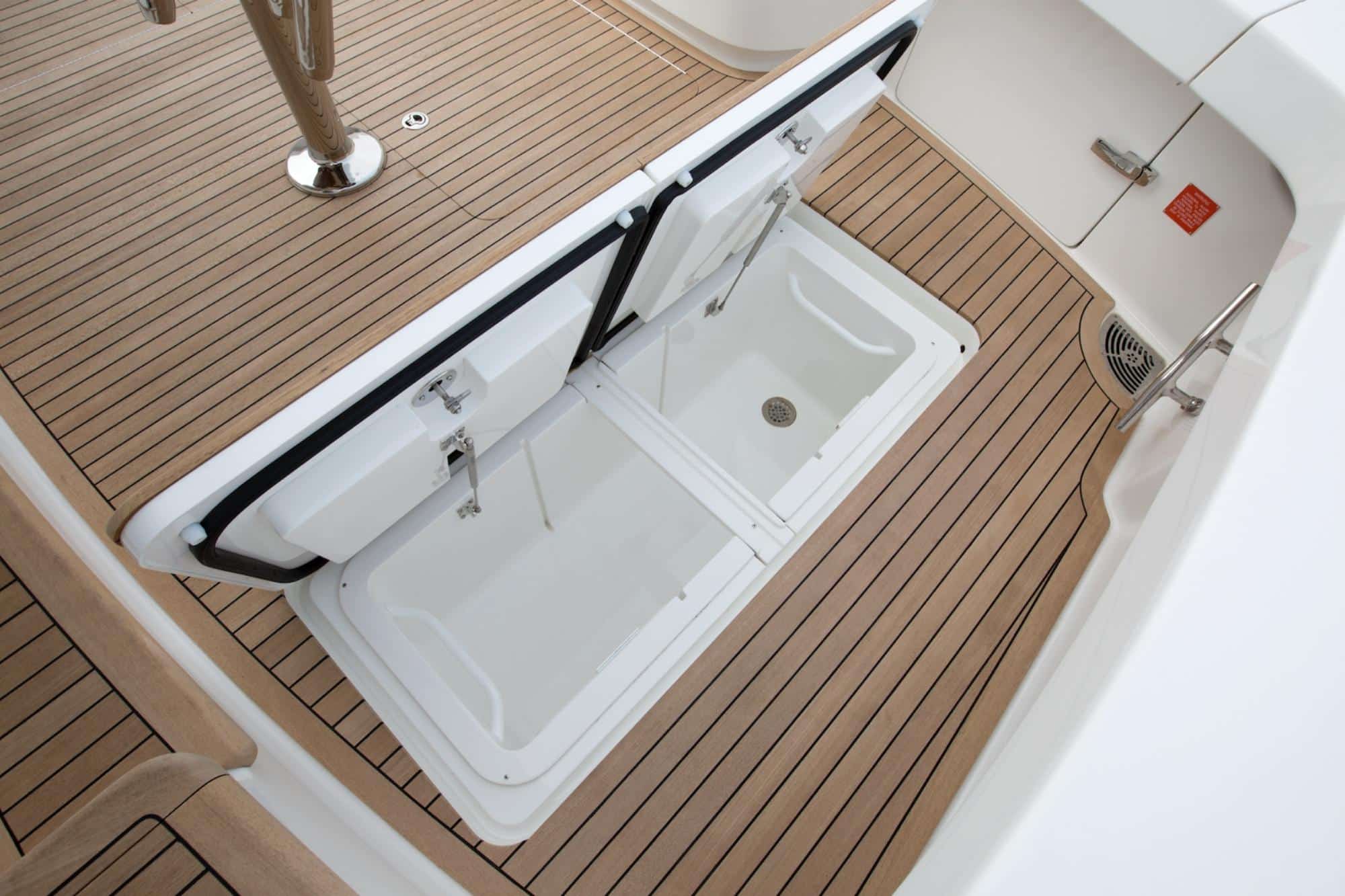 - Centre console walk-around helm with electronic storage raised pod with additional storage raised pod with additional storage below