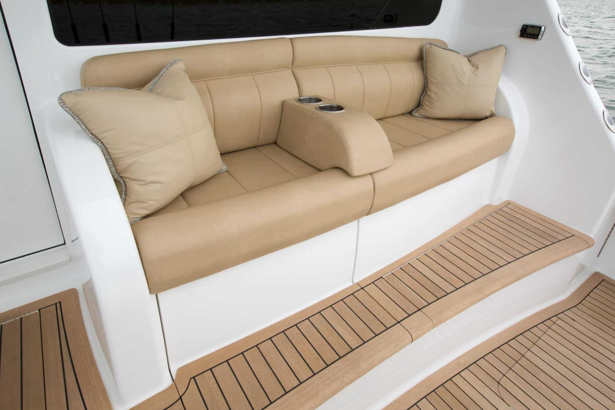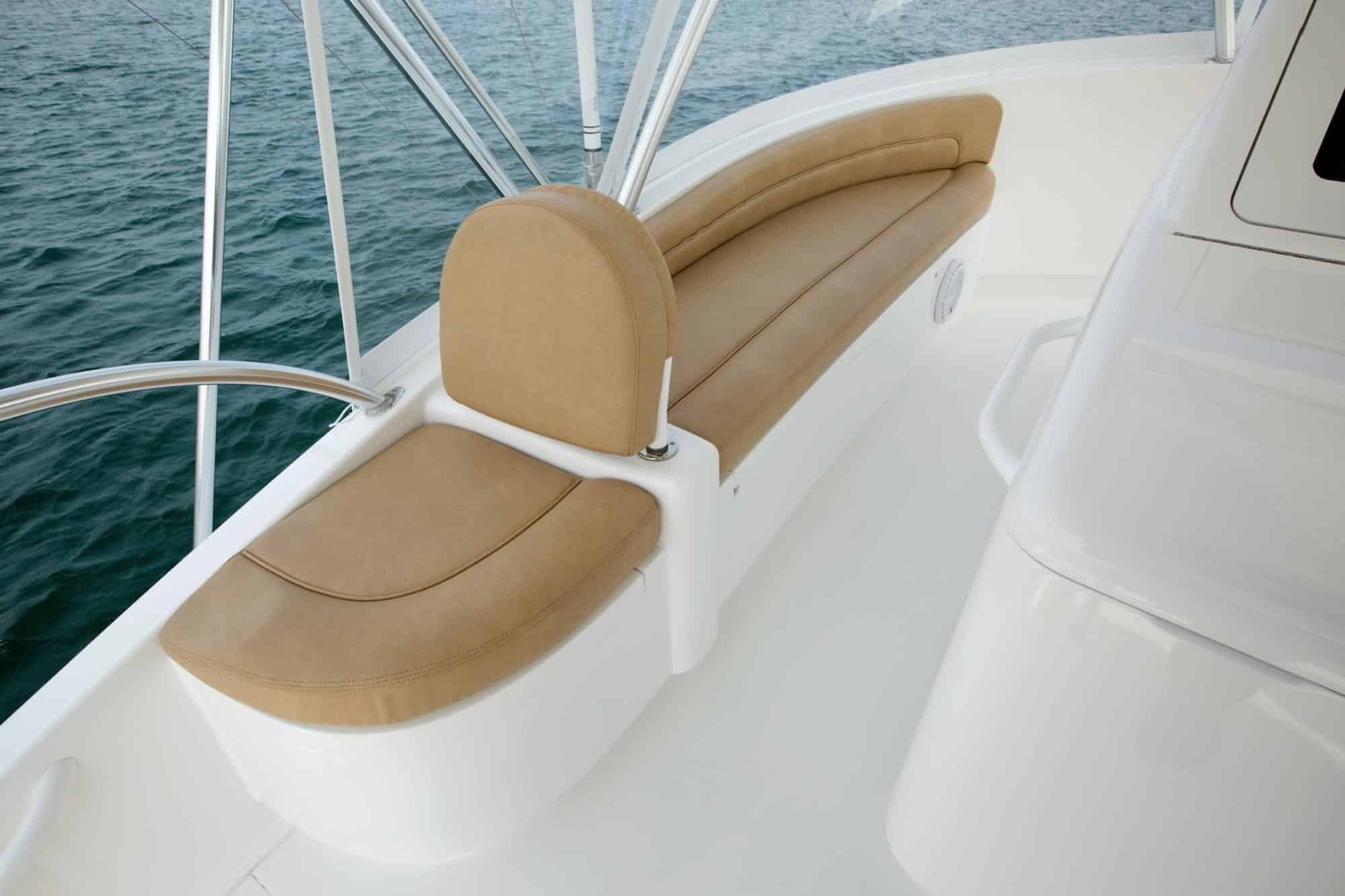 - Port and stbd side bench seating with vinyl cushions and storage underneath