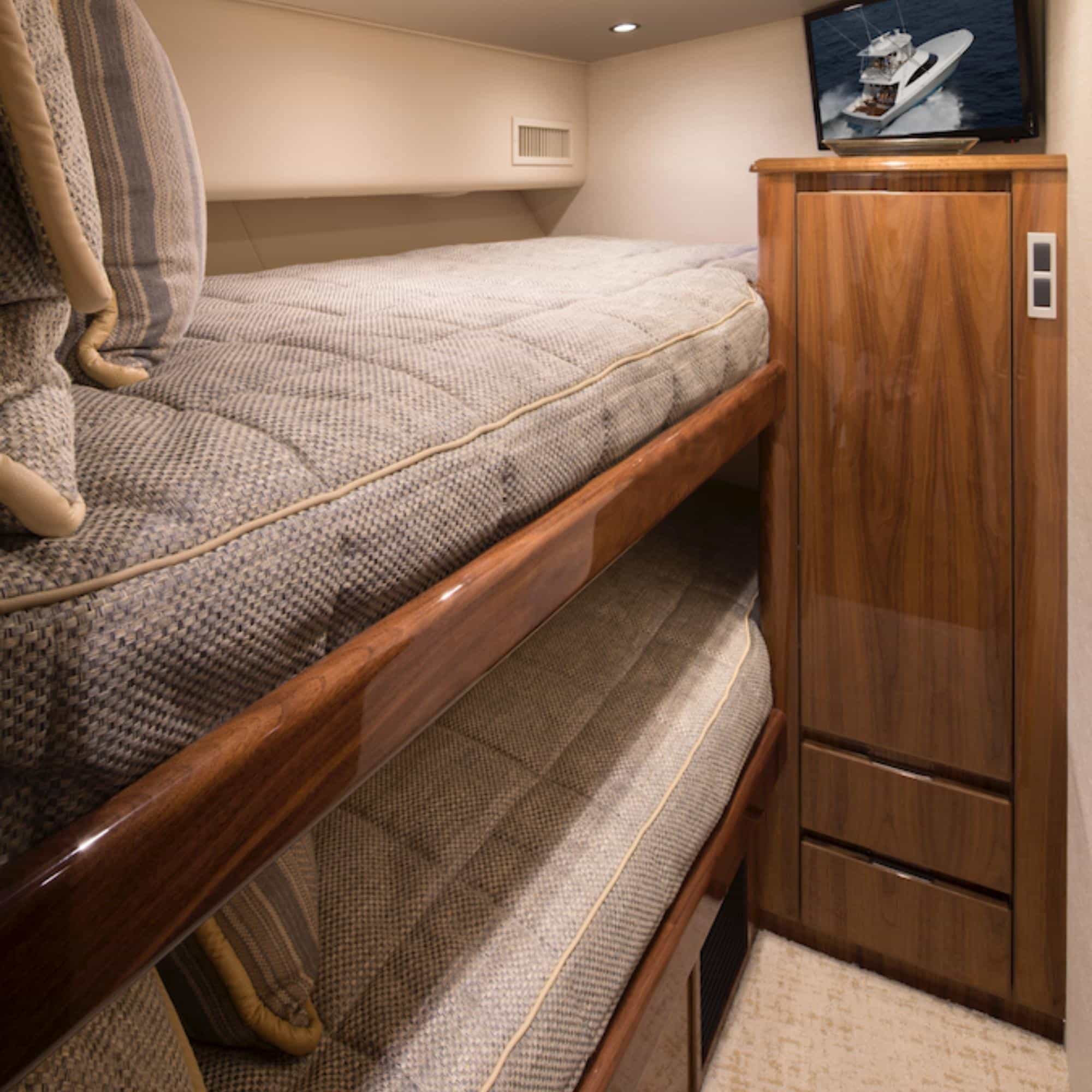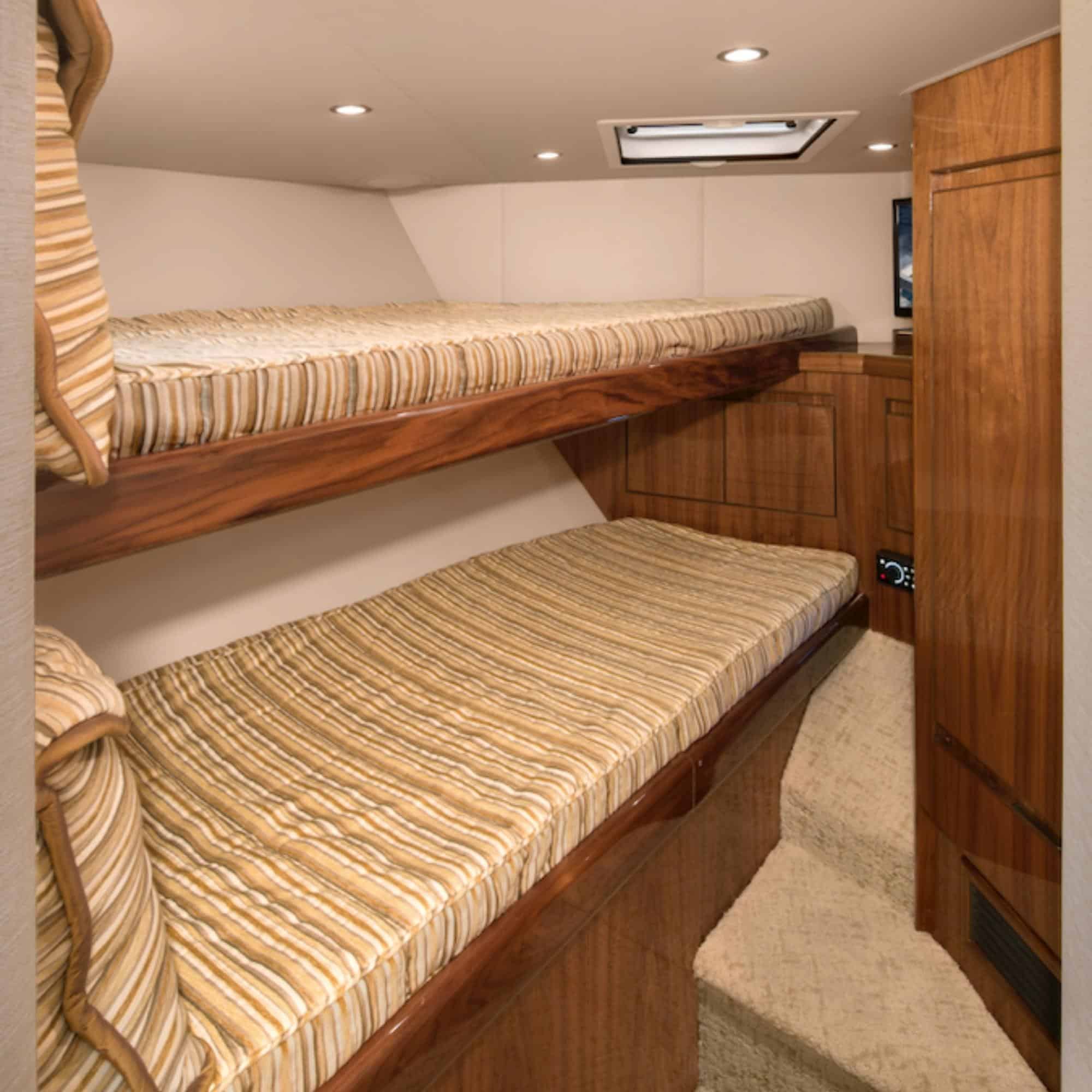 Built with dedicated attention to detail in the Viking tradition spanning more than a half century, the Viking 48 is a luxurious, high-performance convertible yacht. At home 100 miles offshore working a sea surface temperature break or island hopping with the family on summer retreat, opulent accommodations and steadfast engineering abounds. Surrounded by exquisitely hand finished walnut or teak joinery to complement the aura of designer furnishings, the salon offers spacious appointments and a home theater system to relax and entertain. The U-shape galley with a full appliance package includes under counter