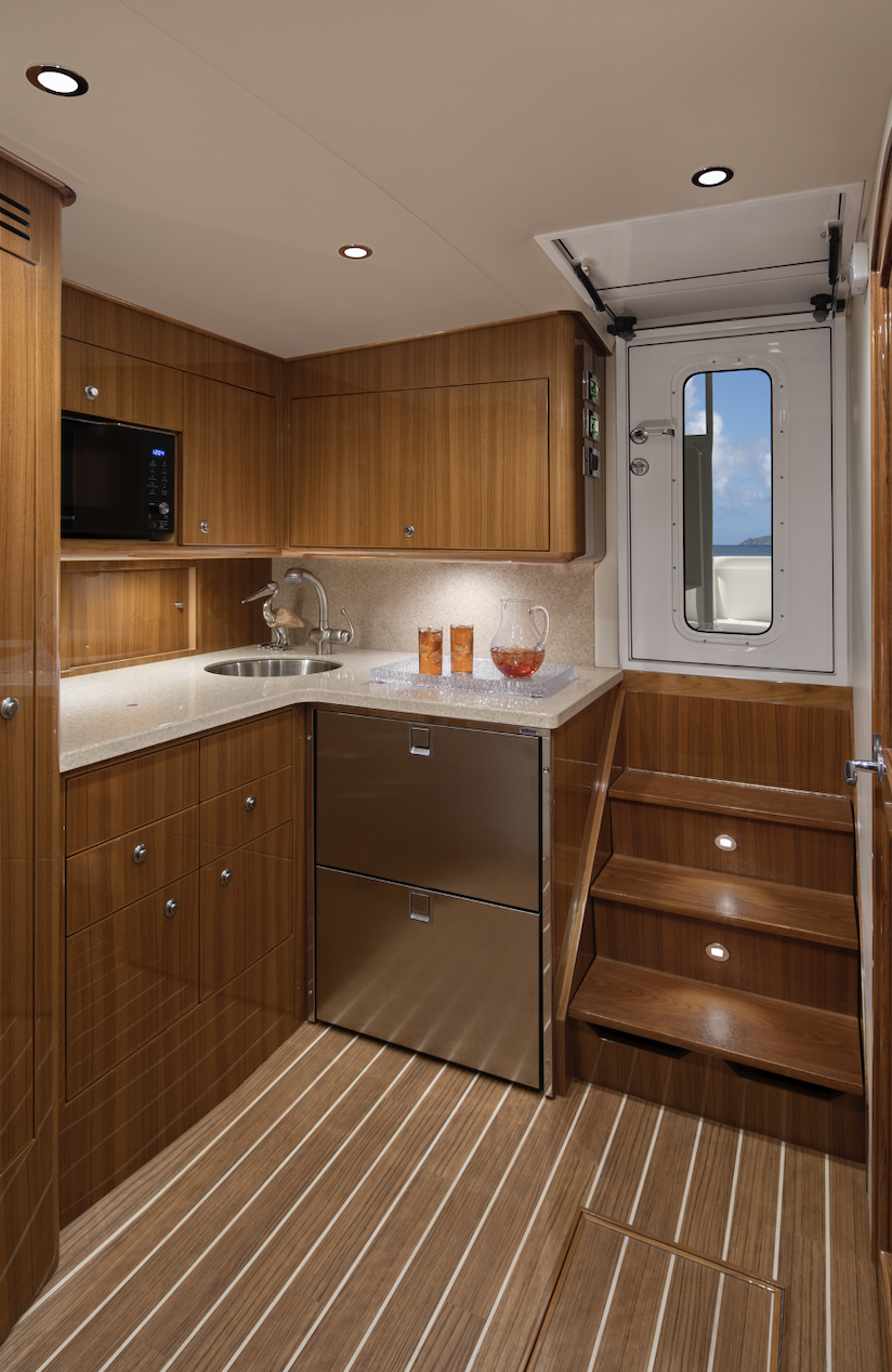 The Viking Yacht Company is known for its consistent production of fresh designs throughout its entire size range, from our smallest fishing boat to our largest motor yacht. The 55-year-old company’s latest innovation, the 38 Billfish, fills a vast void in the sportfishing market with a winning combination of versatility, comfort and performance. The 38 Billfish was designed and built with the same genetic makeup as her predecessor, the 37 Billfish. As an owner/operator vessel, the 38 Billfish offers simplicity and ease of maintenance, serving as a ready-to-go fishing machine equipped for inshore and offshore missions as well as a cruising boat with reliable inboard diesel power.
