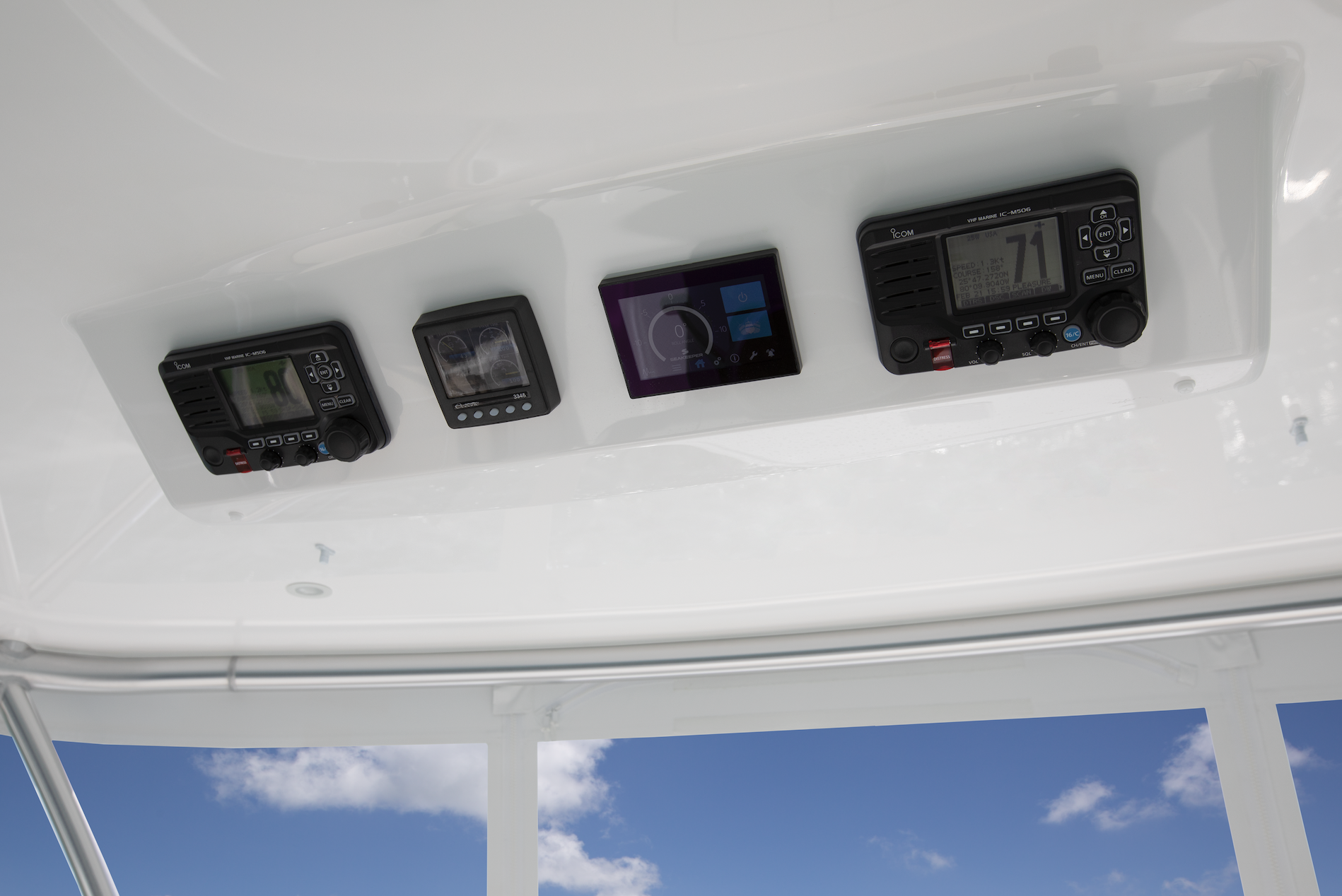 - Stereo speakers, tied into stereo system in cabin with volume control at upper helm
