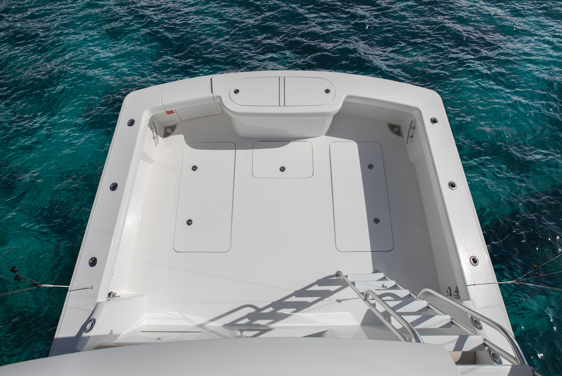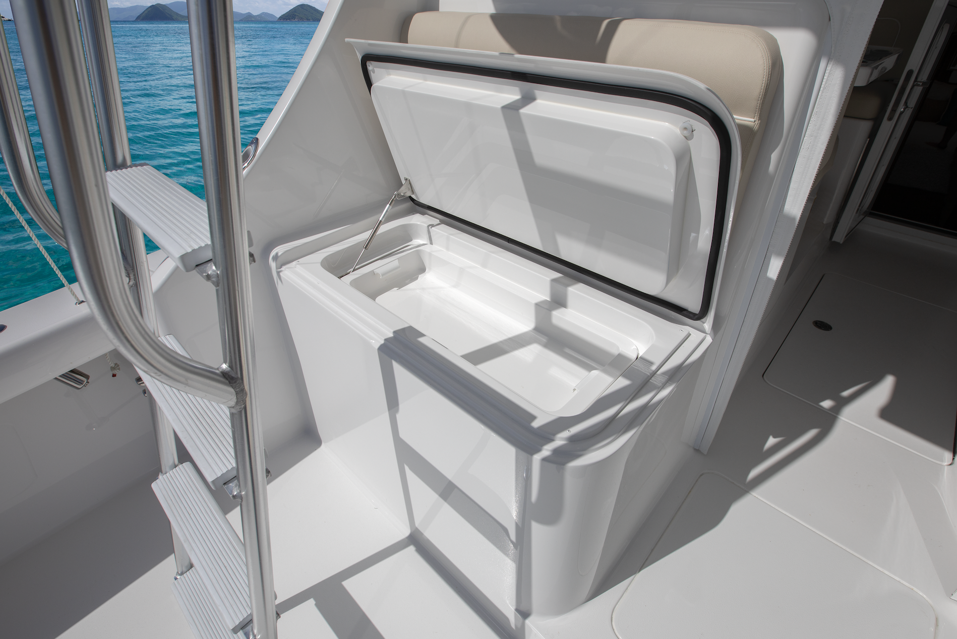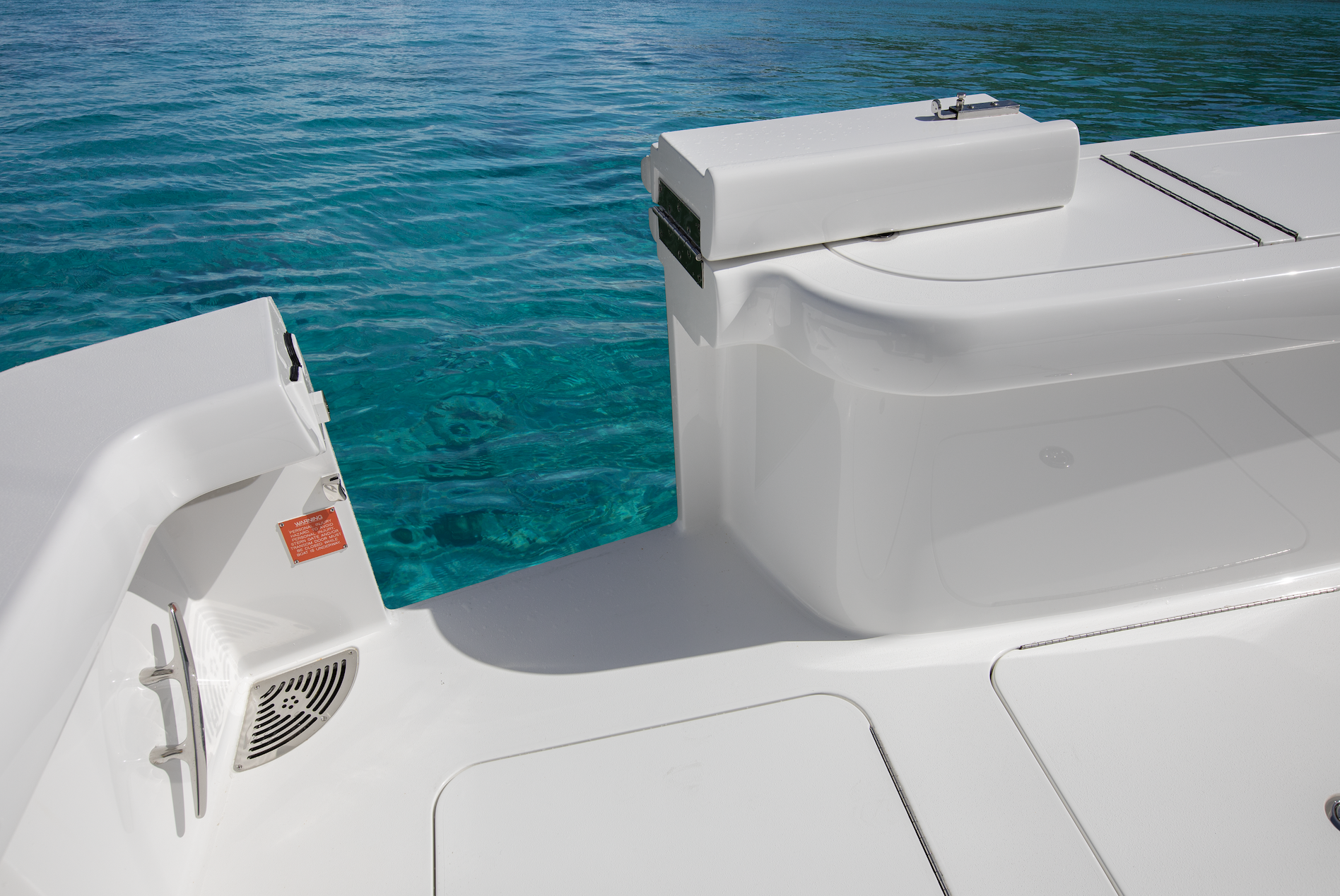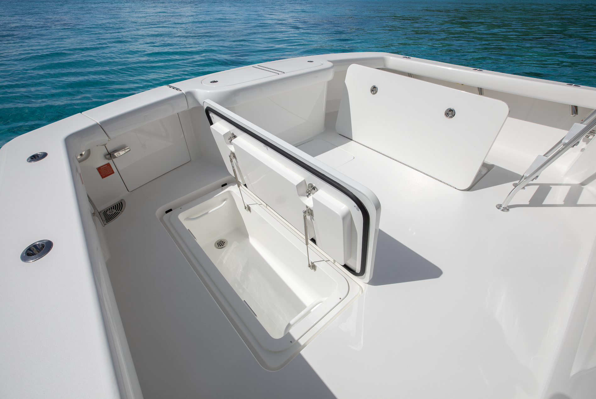 - Fishboxes, insulated, port and starboard, with hatches and drains plumbed to pump outs Freshwater wash down with hose bib located under forward gunwale
