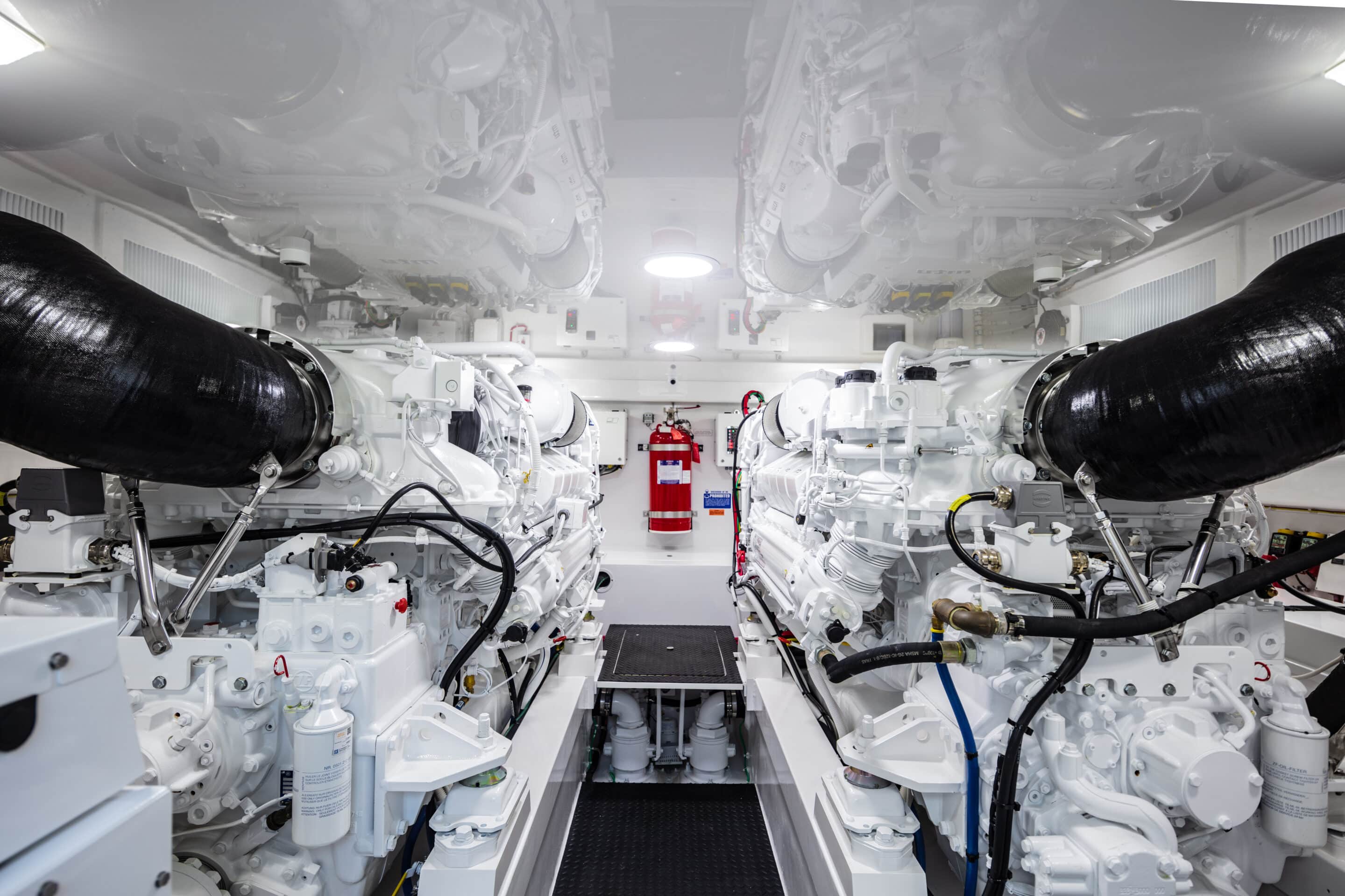 - Fire suppression system, automatically or manually operated and tied into main engine and generator ignition systems with override