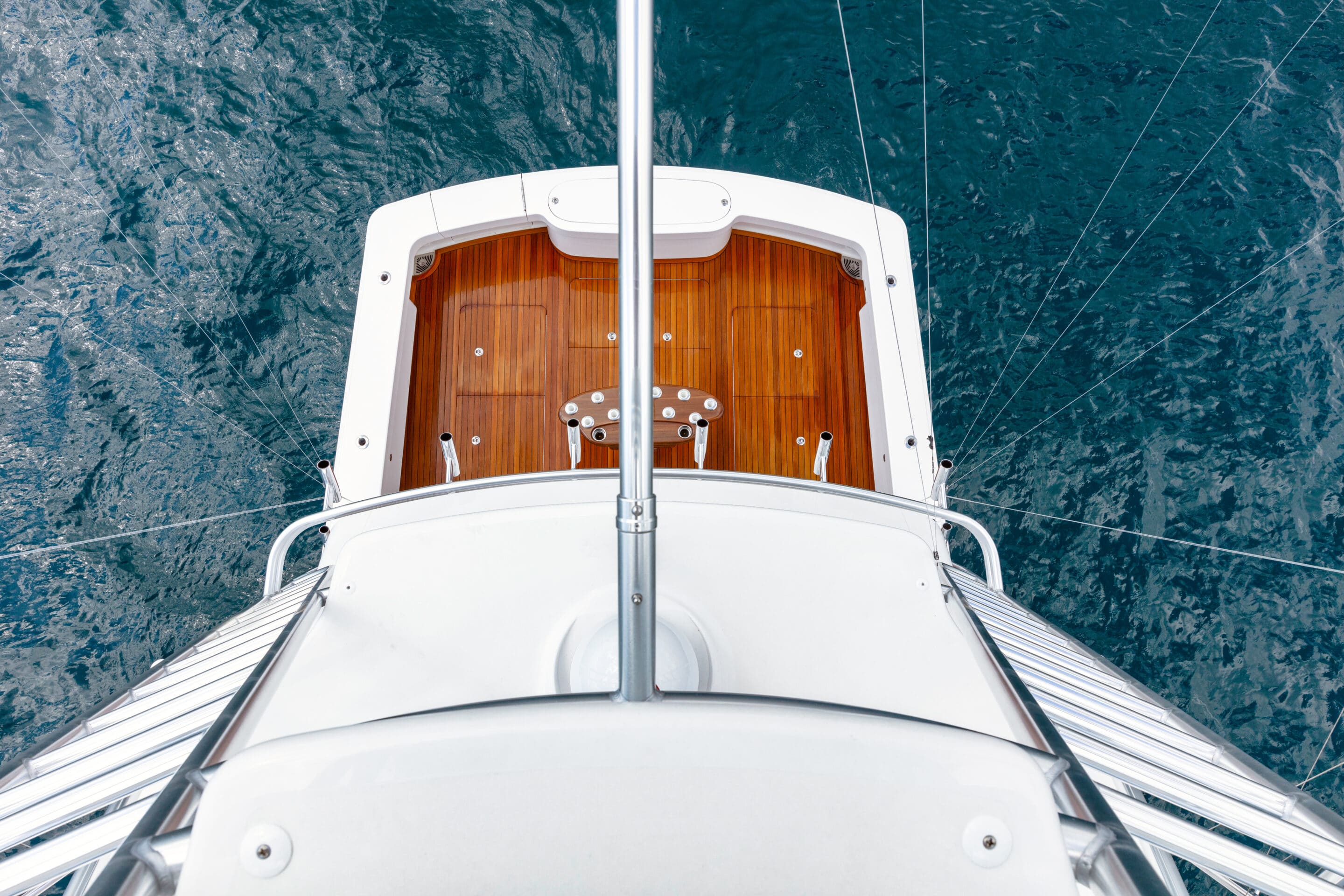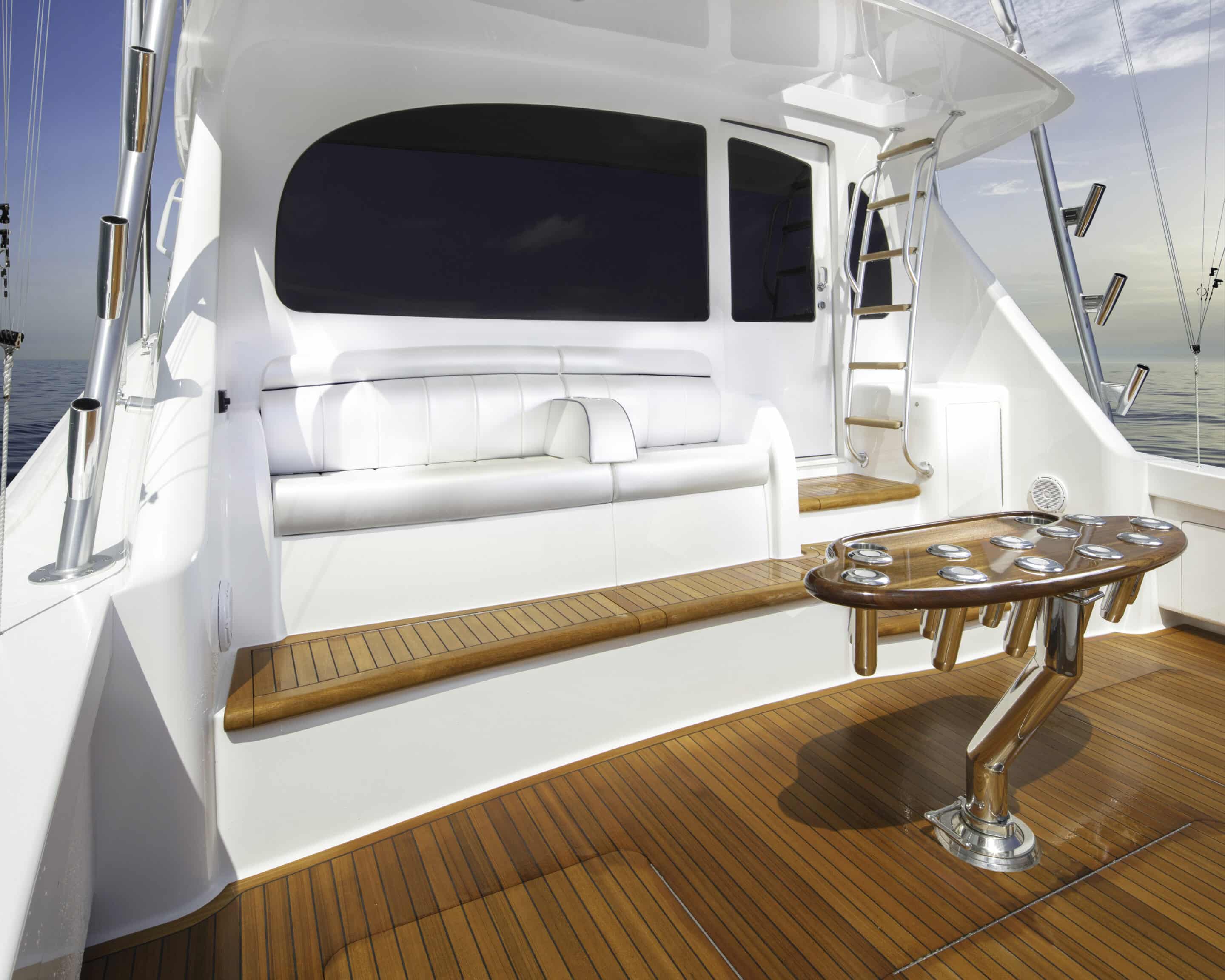 - Extended overhang for extra room to move around behind helm and companion seats with anodized aluminium aft railing